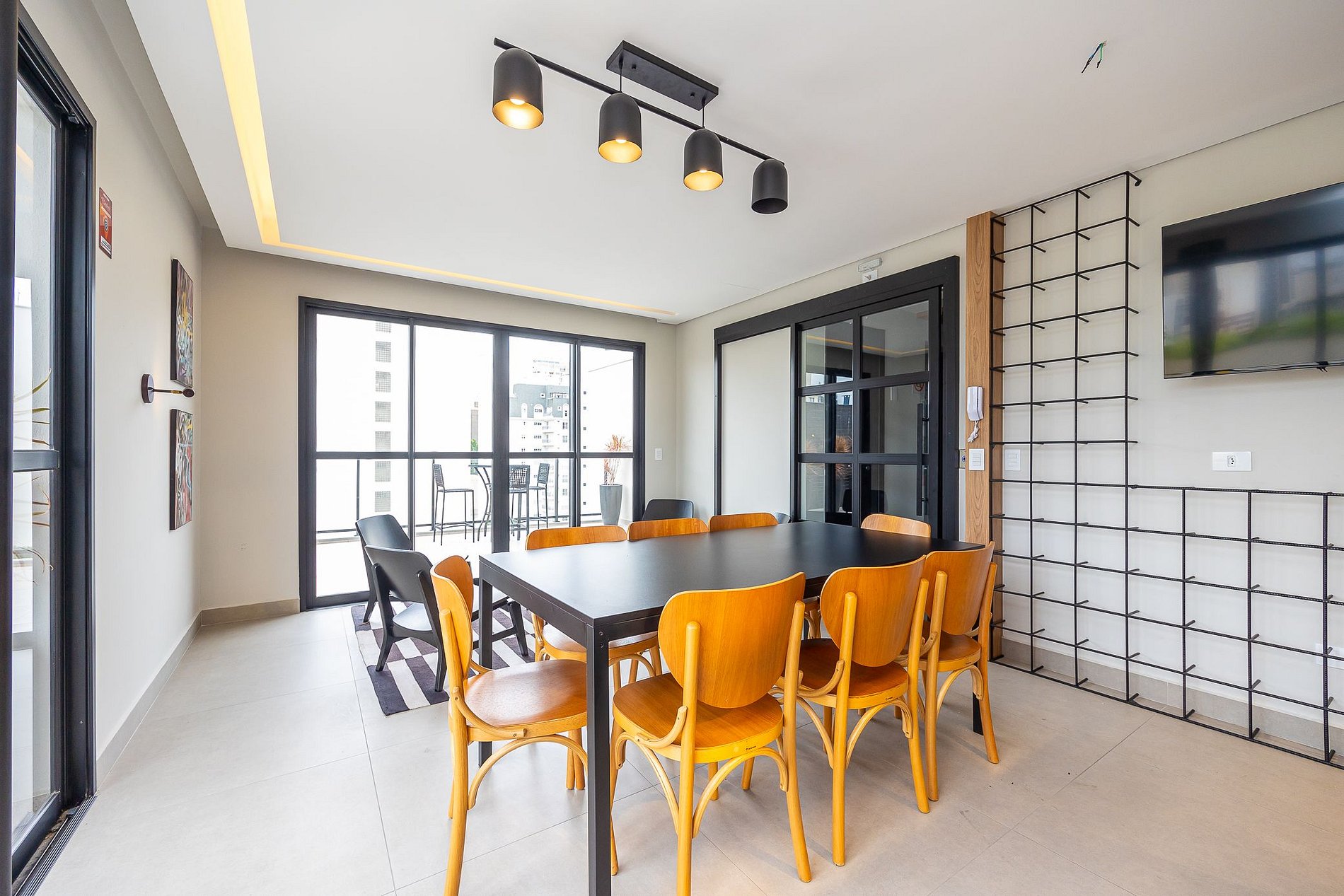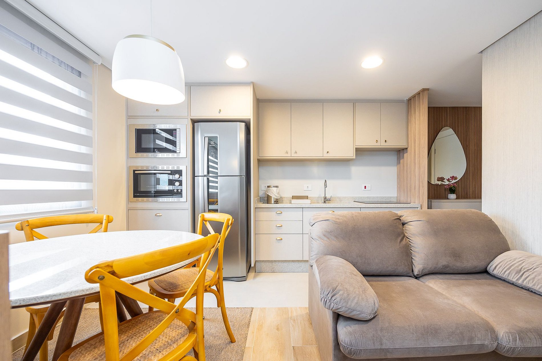 Apartamento con excelente circulación de aire, con decoración acogedora, en condominio tranquilo. El espacio ofrece todo lo necesario para hacerte sentir como en tu casa en Curitiba.