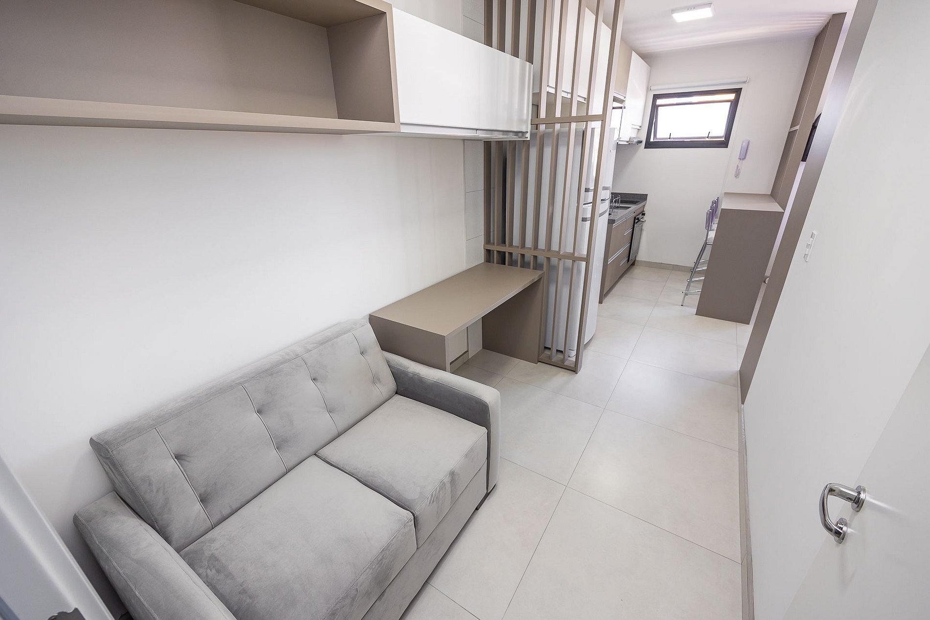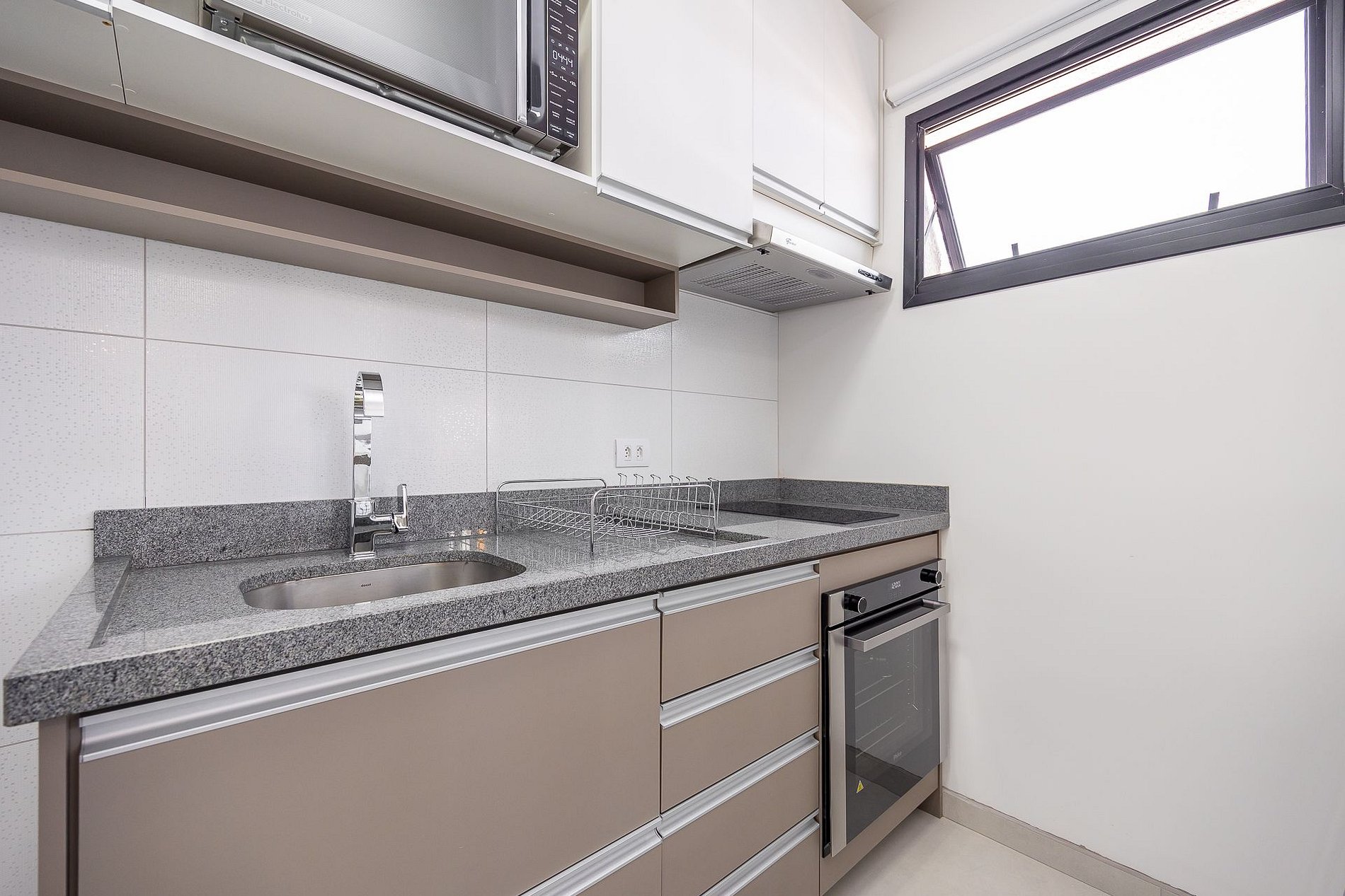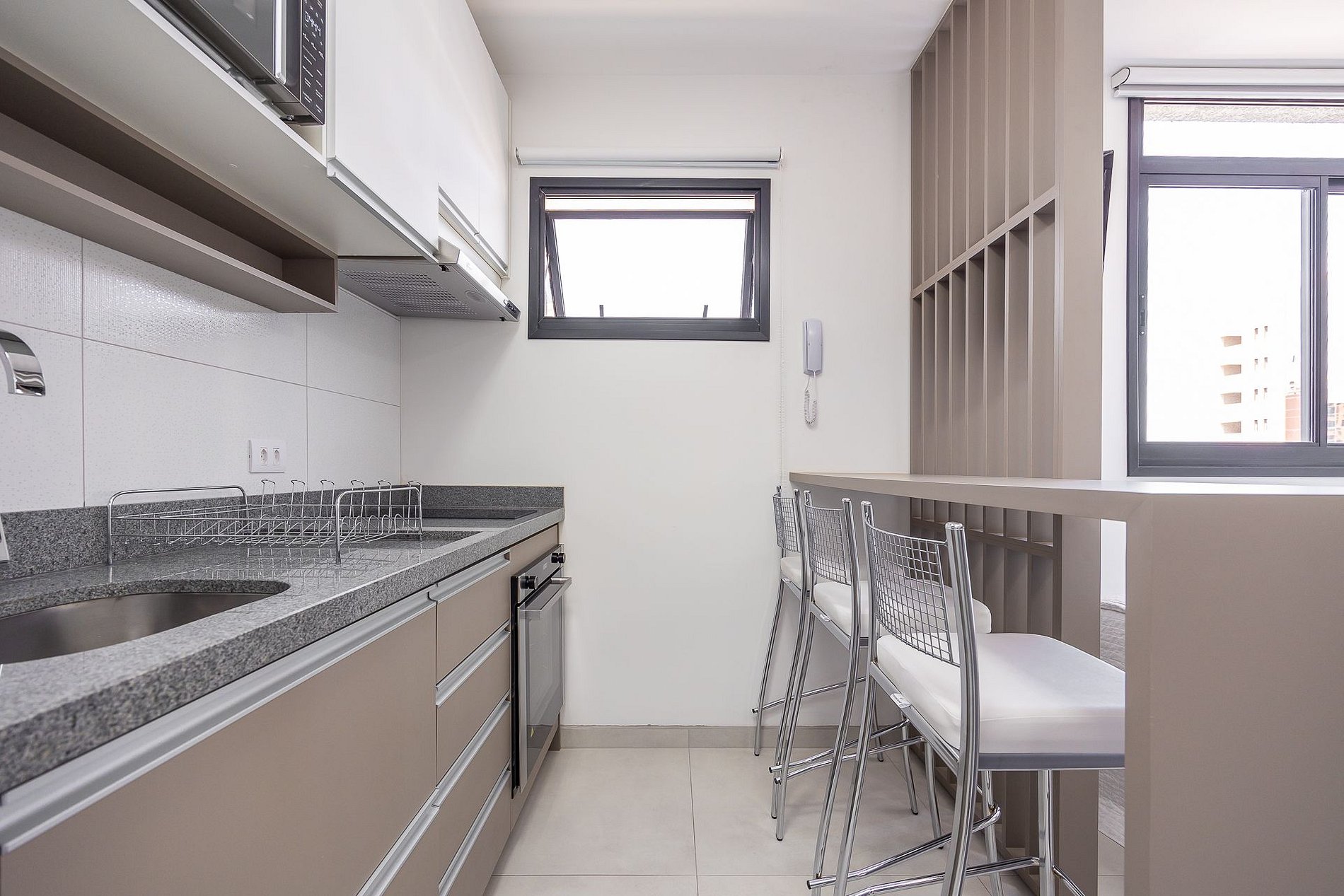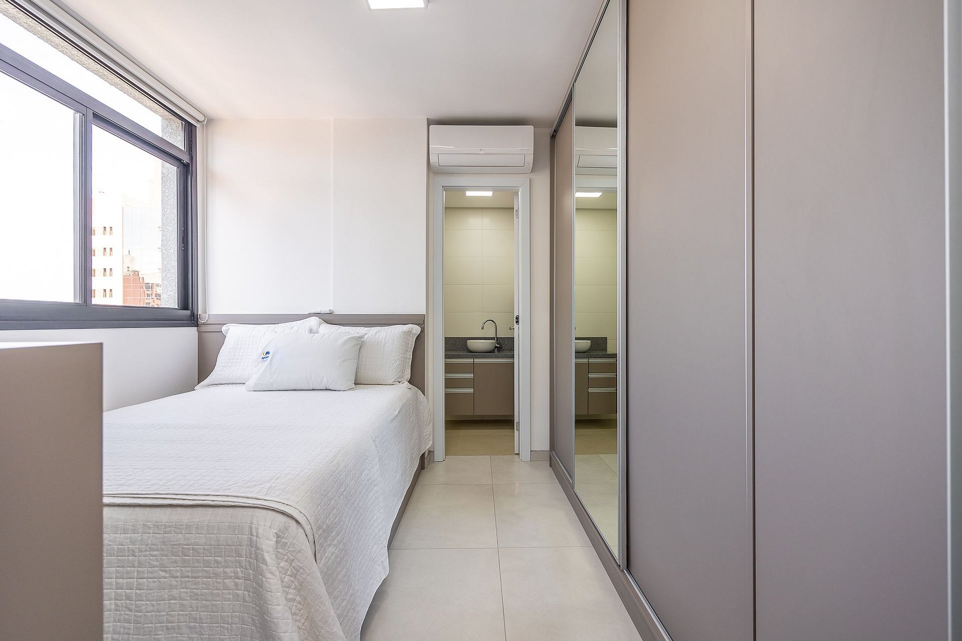 Studio totalmente mobiliado, no 10º andar, em excelente localização no centro de Curitiba/PR. Finamente decorado, com aproximadamente 26m², conta com: