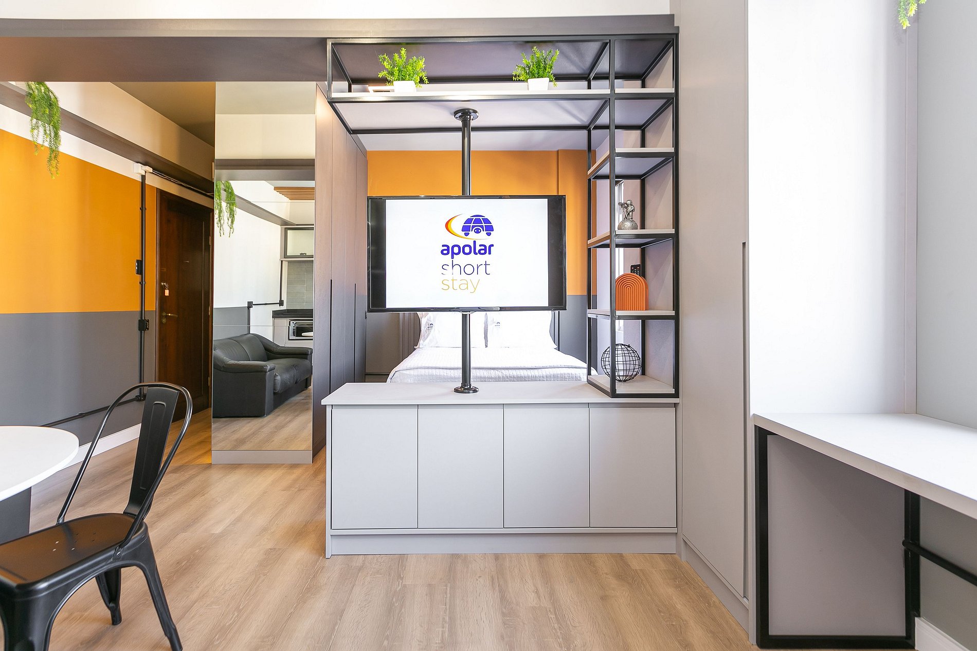Wi-Fi incluído, aquecimento elétrico, Móveis sob medida, Cama box casal, Sofá, Smart TV 43", Cadeiras, Geladeira duplex, Fogão de indução, Jogo de panelas, Talheres, Jogo de facas, Louças, Utensílios para cozinha.