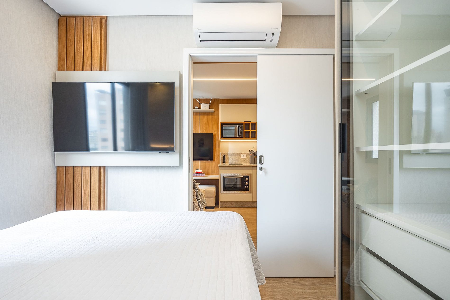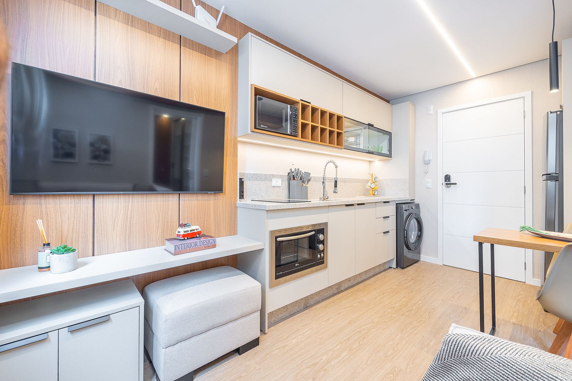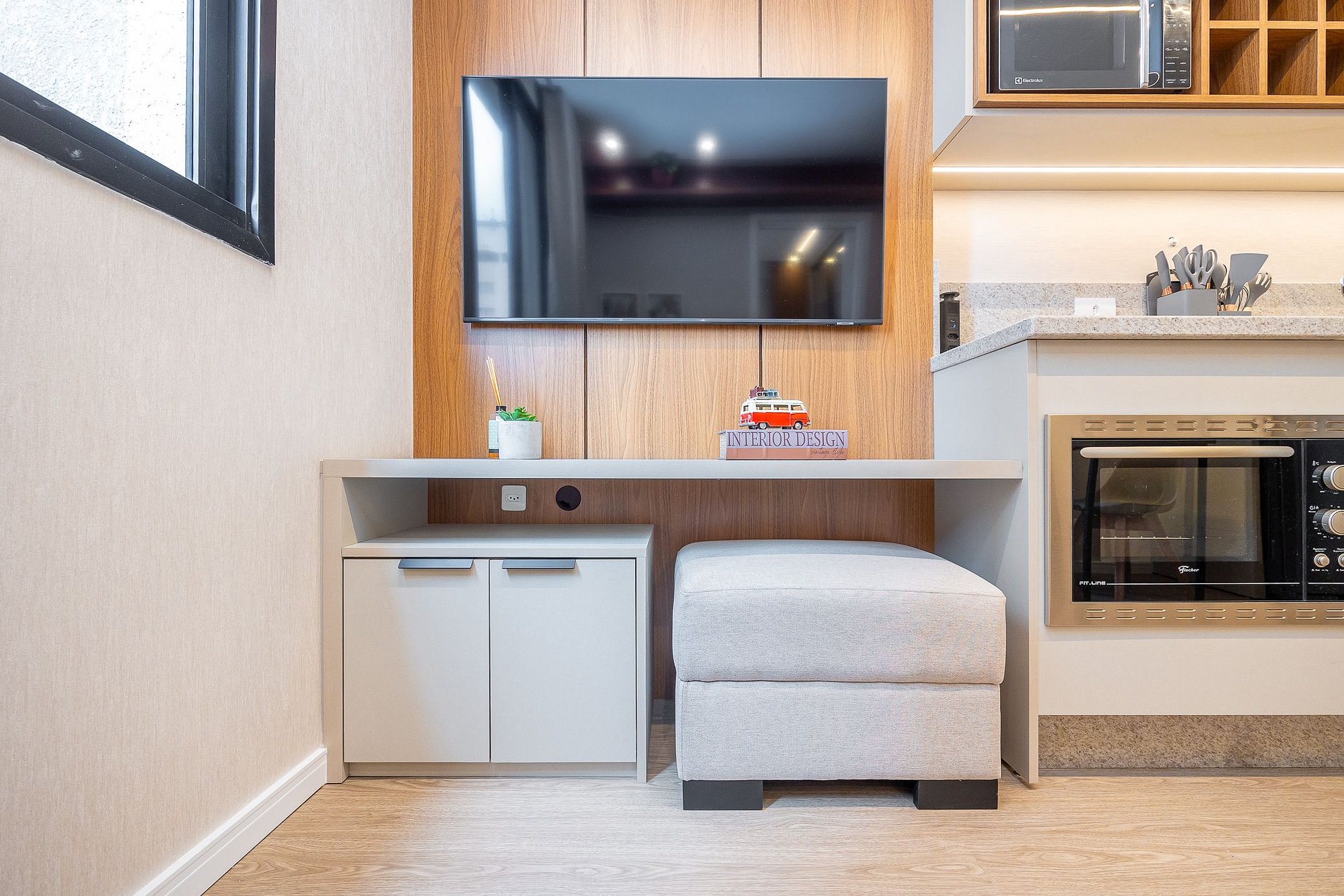 Studio totalmente mobiliado, no 10º andar, em excelente localização no centro de Curitiba/PR. Finamente decorado, com aproximadamente 30m², conta com: