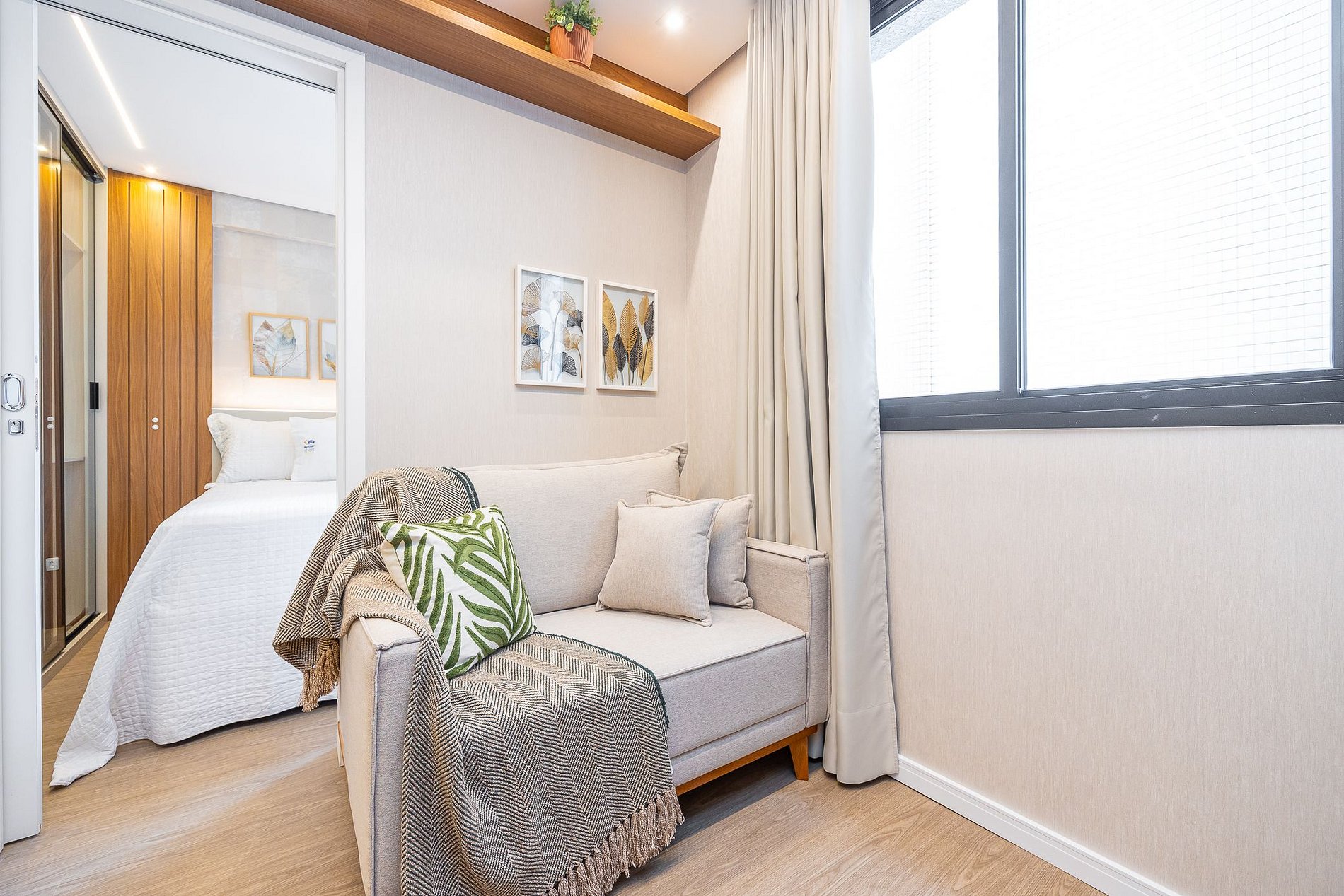 Apartamento com excelente circulação de ar, com decoração aconchegante, em um condomínio tranquilo. O espaço proporciona o necessário para que você sinta que é seu lar em Curitiba.