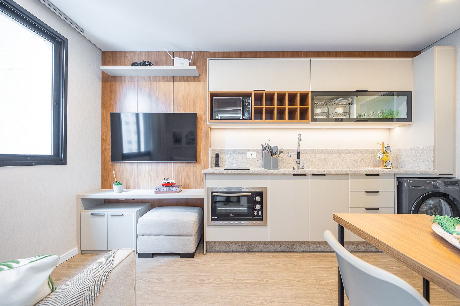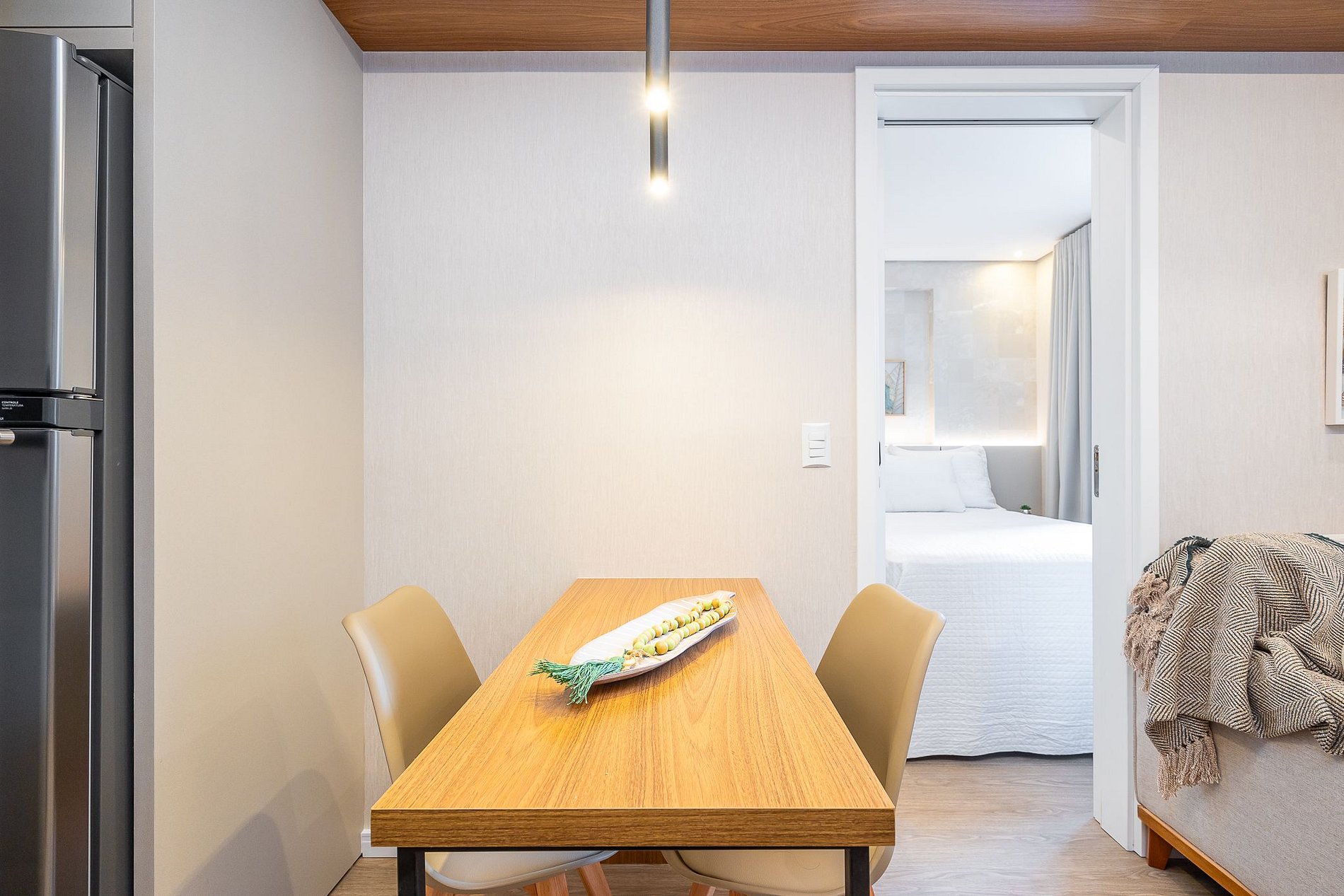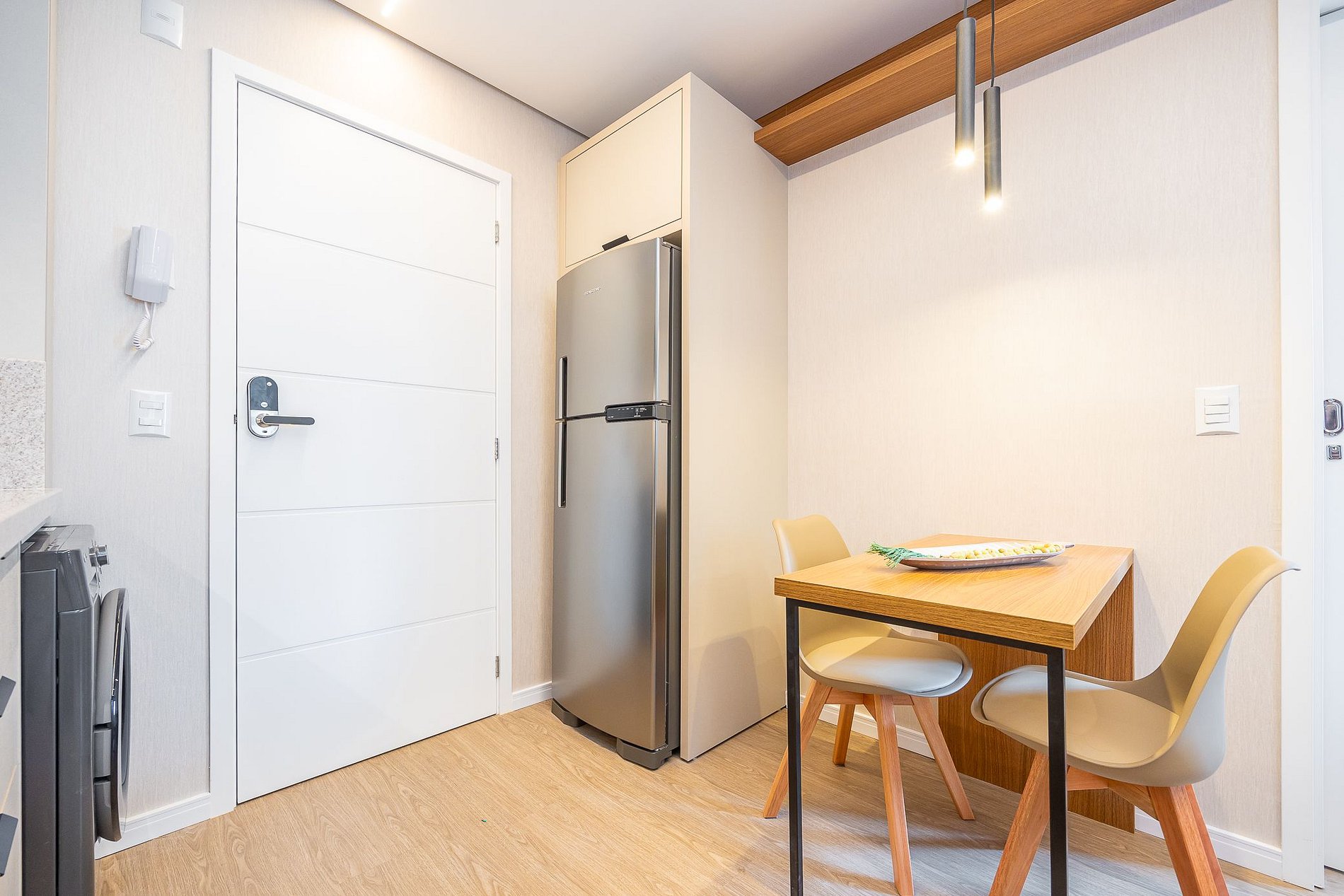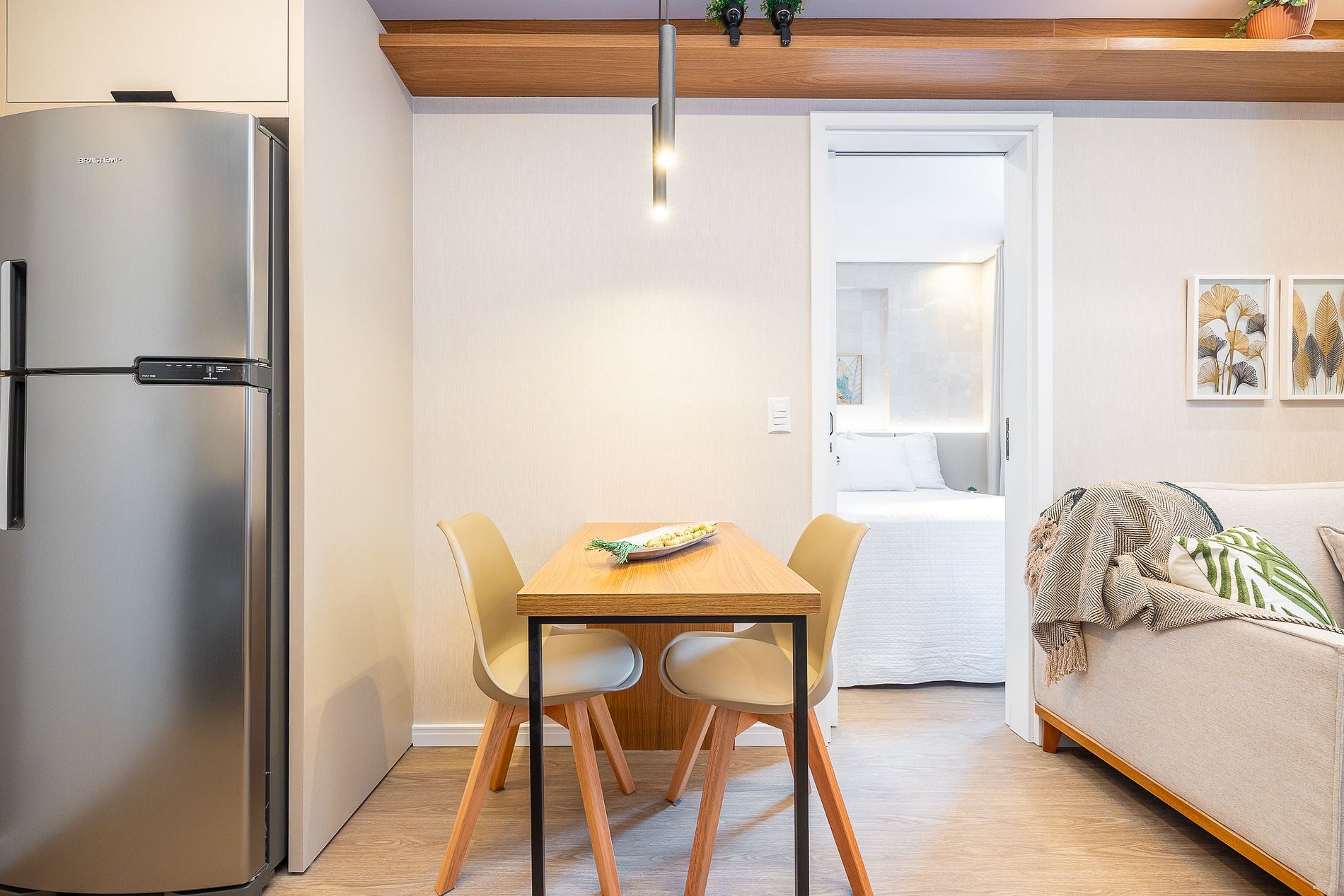 Wi-Fi, aquecimento a gás, móveis sob medida, cama casal, smart TV, Cadeiras, geladeira duplex, fogão, microondas, forno elétrico, utensílios para cozinha, cafeteira DouceGusto, air Fryer, pipoqueira elétrica, chaleira elétrica, mixer, Máquina Lava e seca.
