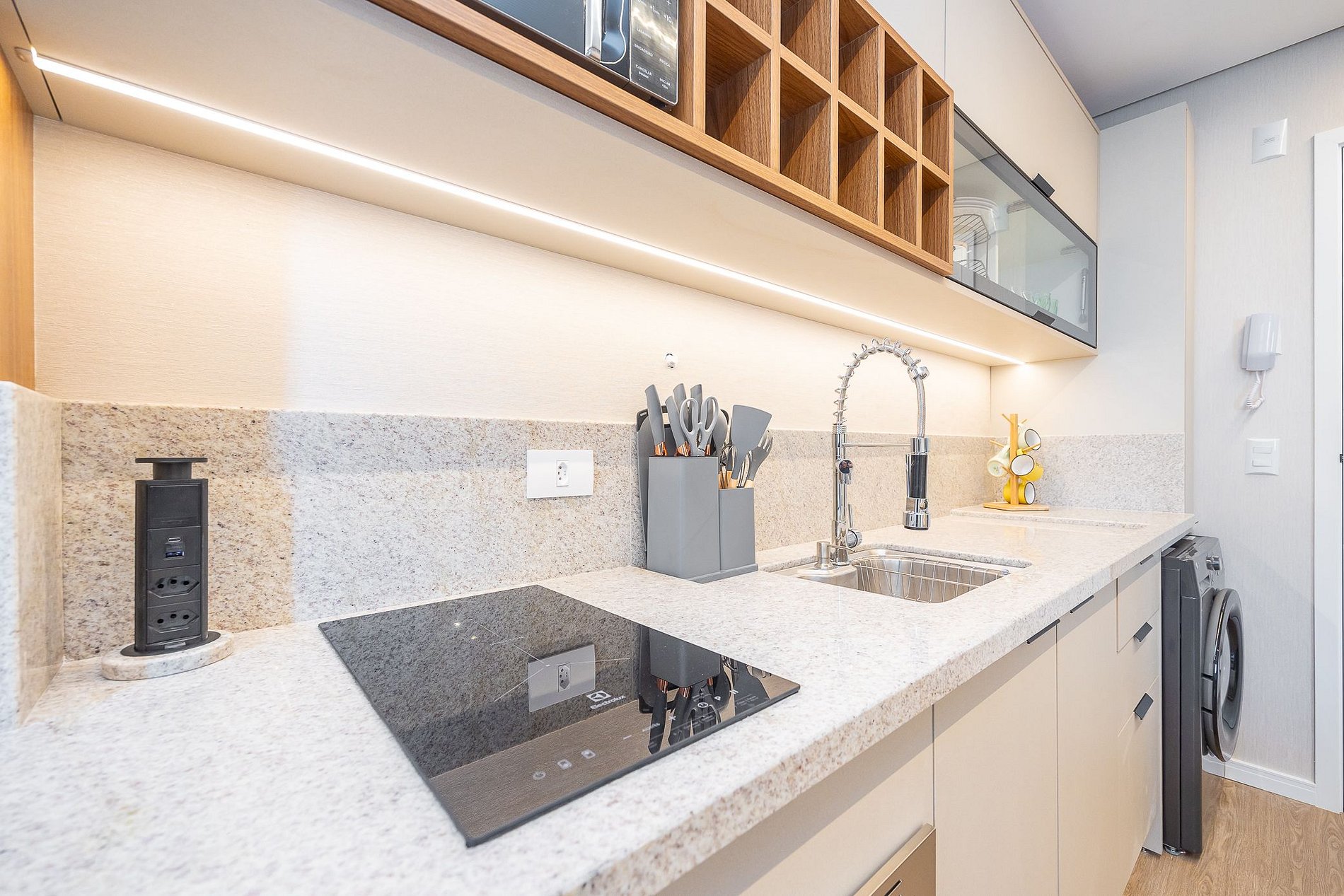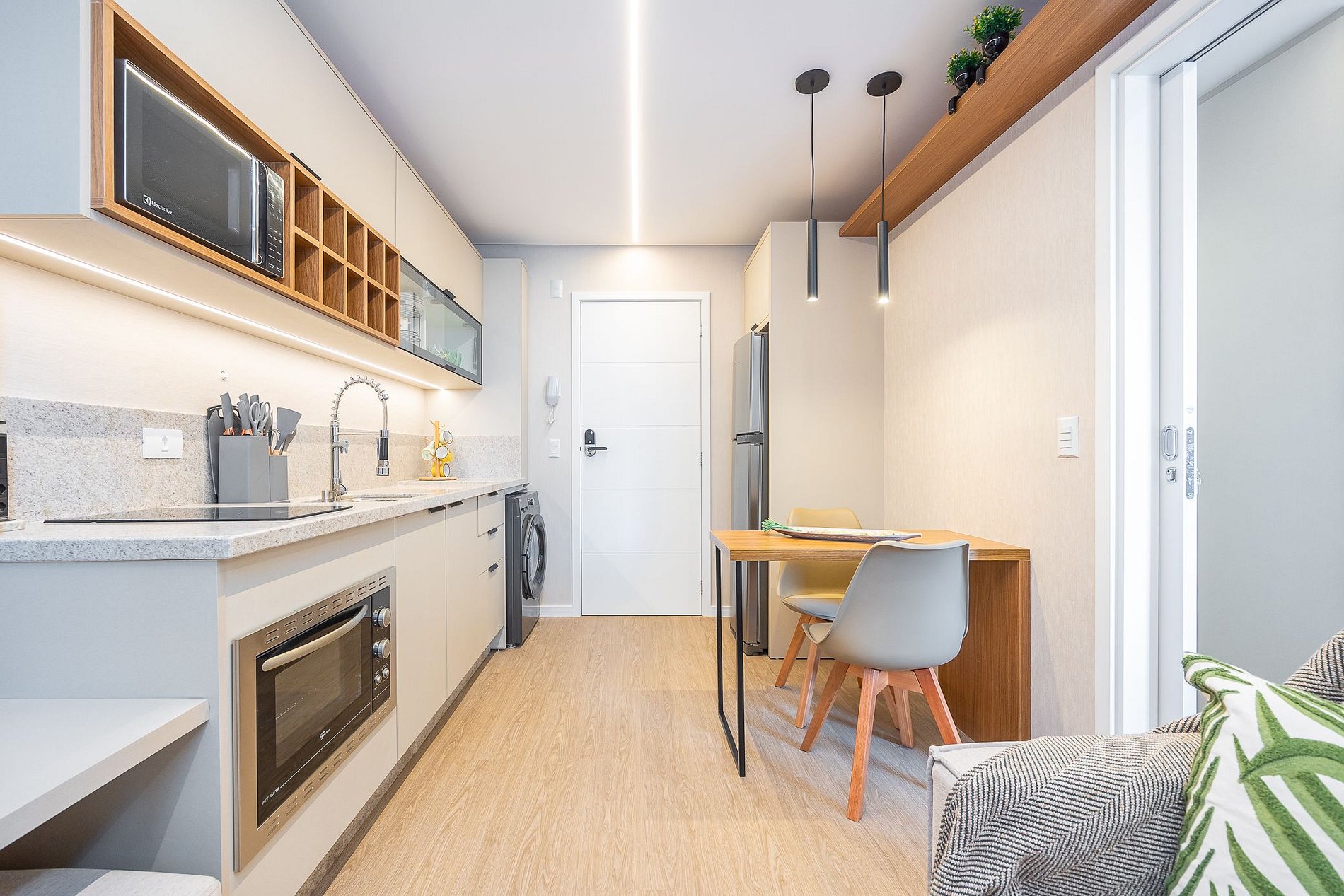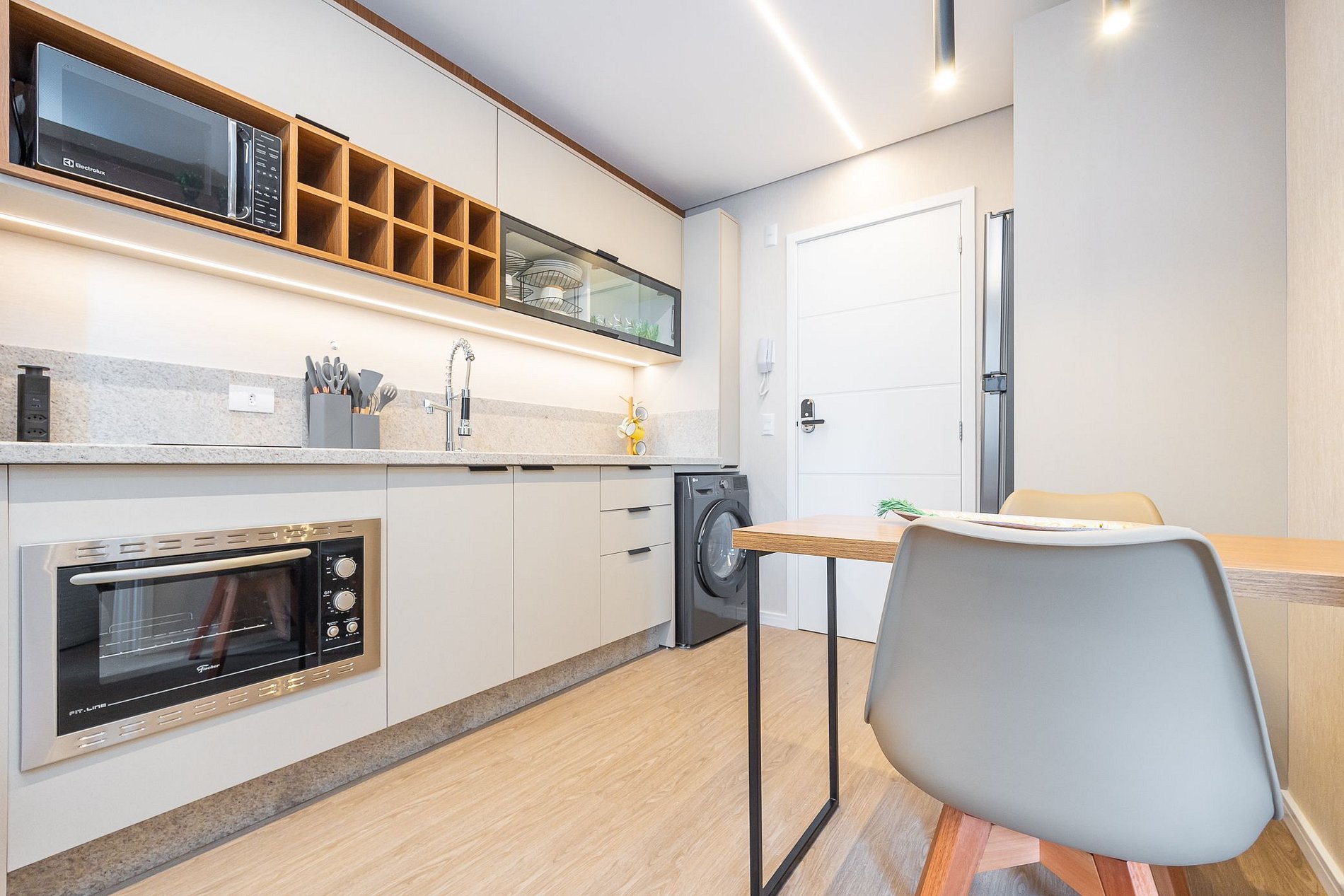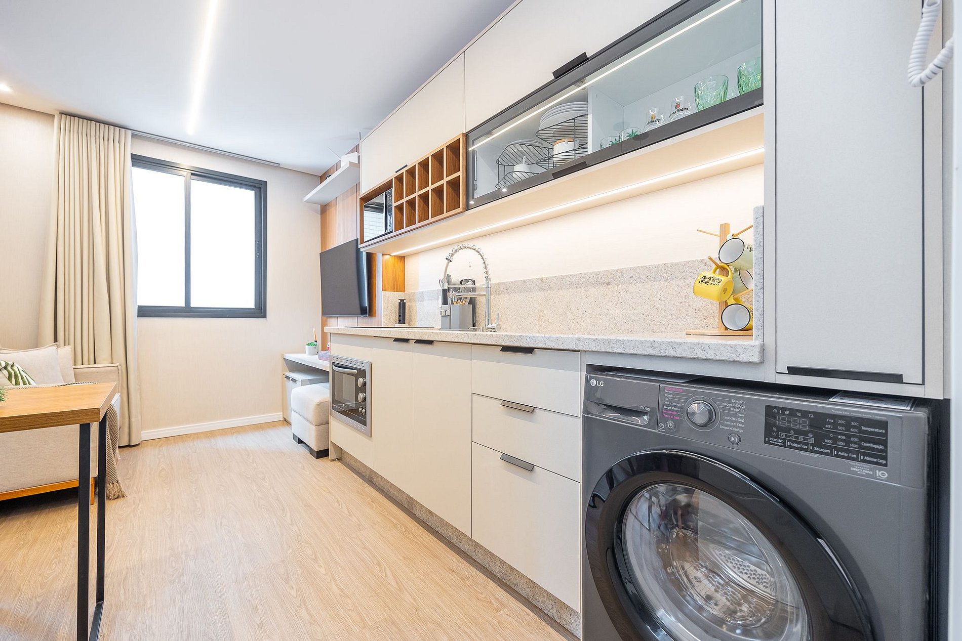 Wi-Fi, aquecimento a gás, móveis sob medida, cama casal, smart TV, Cadeiras, geladeira duplex, fogão, microondas, forno elétrico, utensílios para cozinha, cafeteira DouceGusto, air Fryer, pipoqueira elétrica, chaleira elétrica, mixer, Máquina Lava e seca.