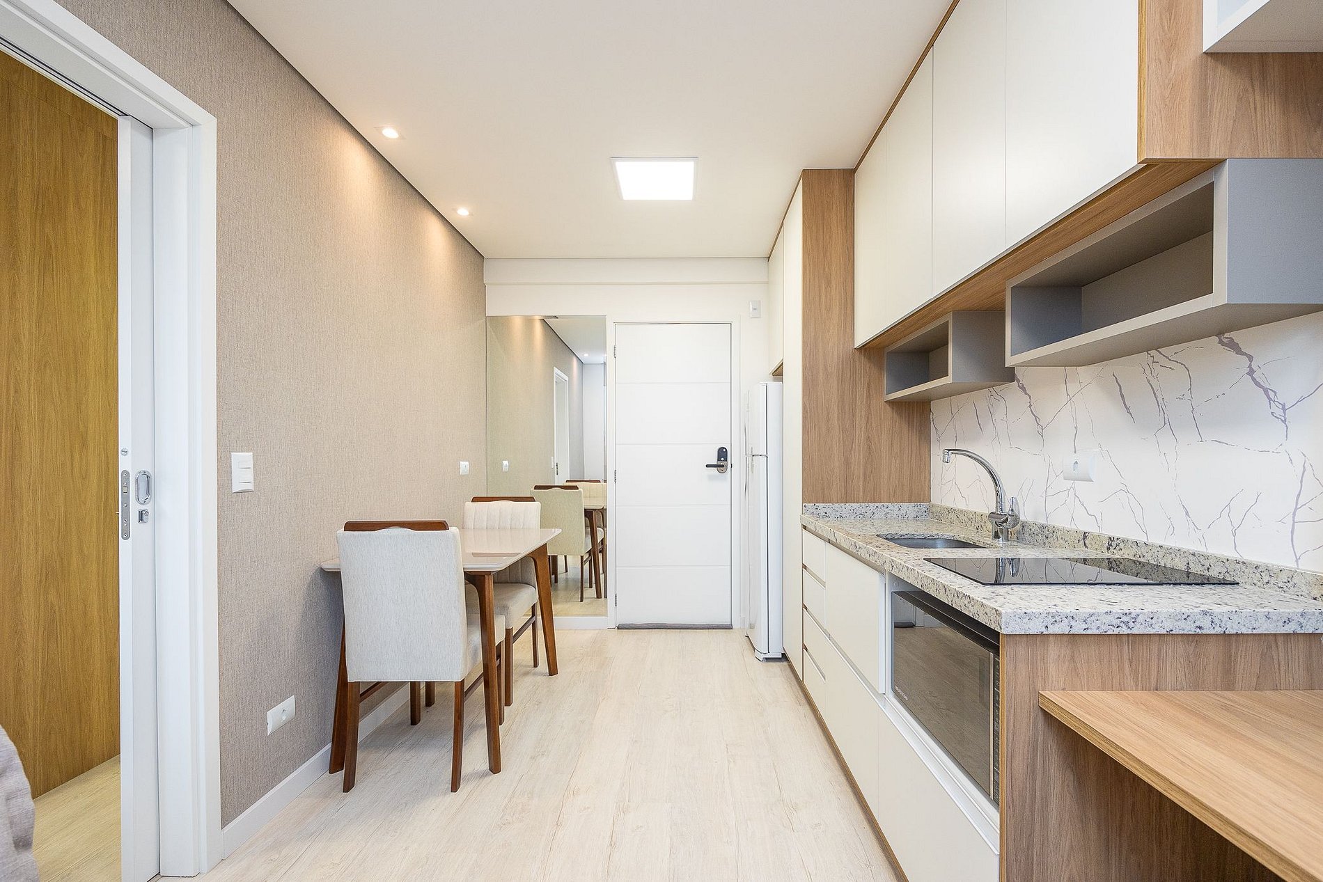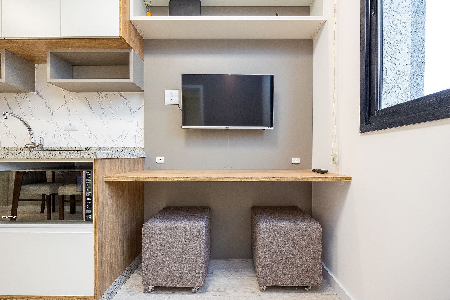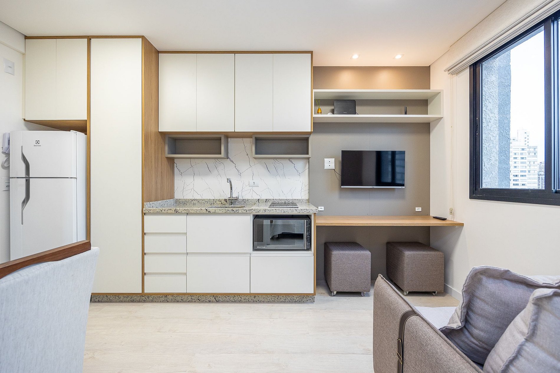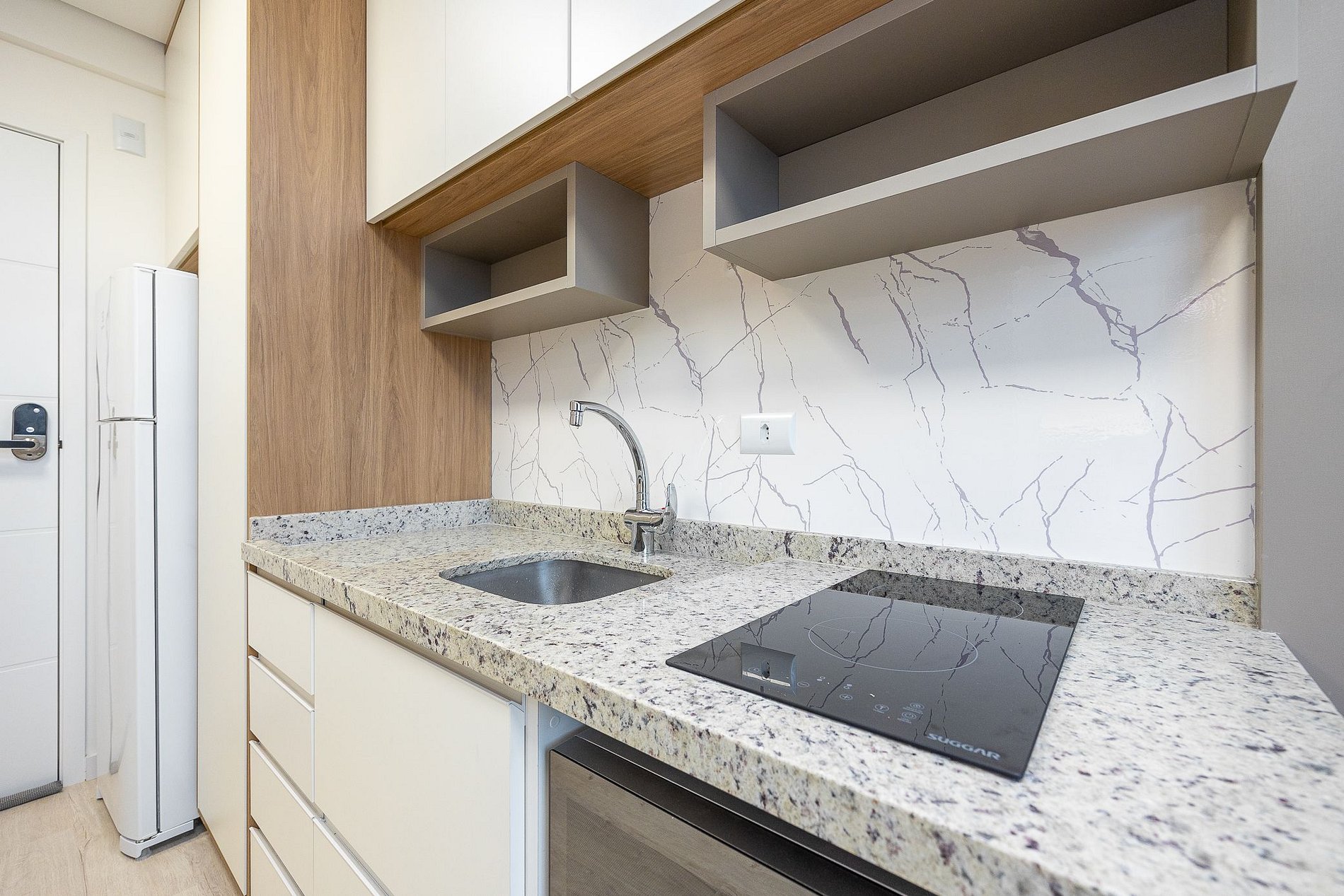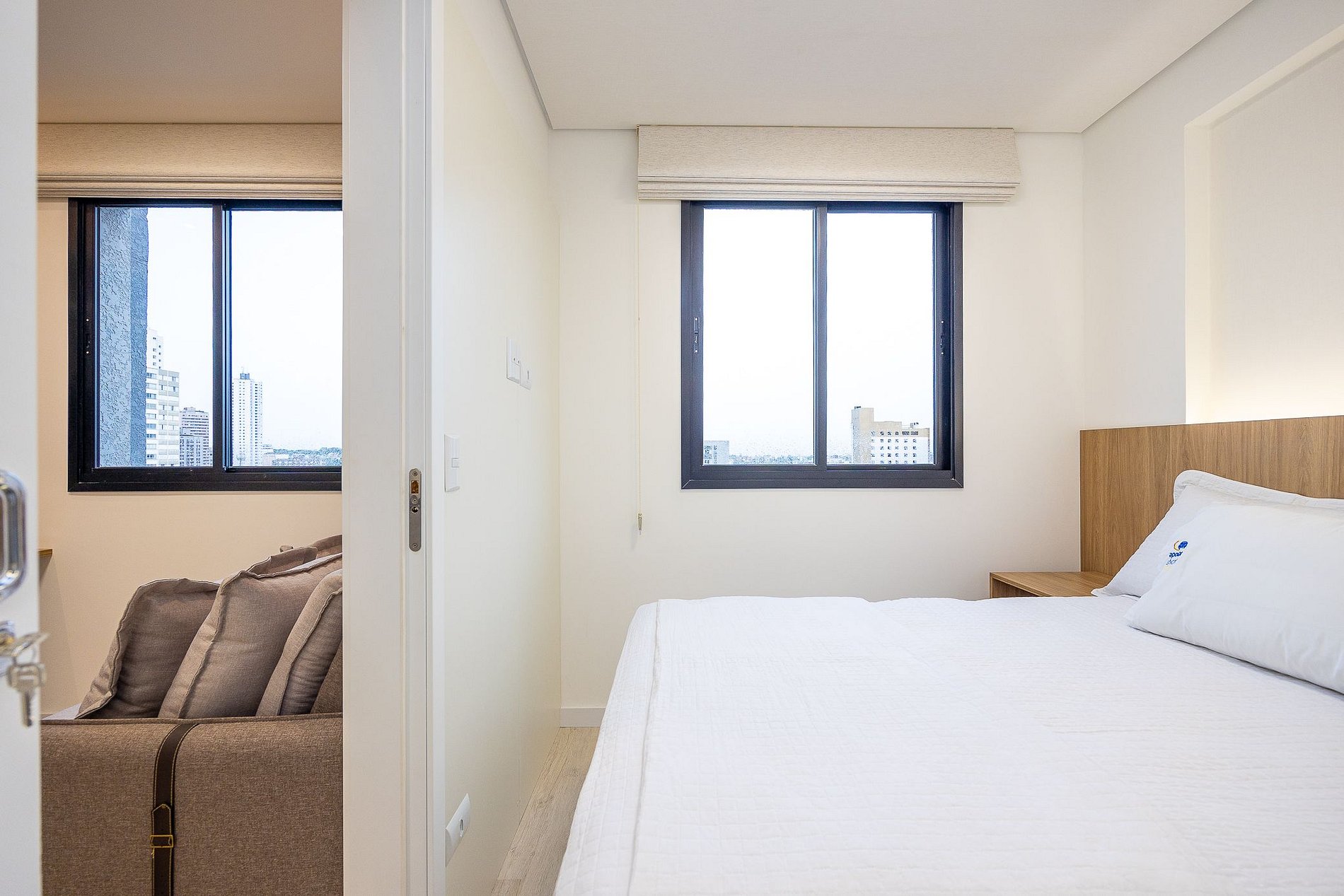 Studio totalmente mobiliado, no 11º andar, em excelente localização no centro de Curitiba/PR. Finamente decorado, com aproximadamente 30m², conta com: