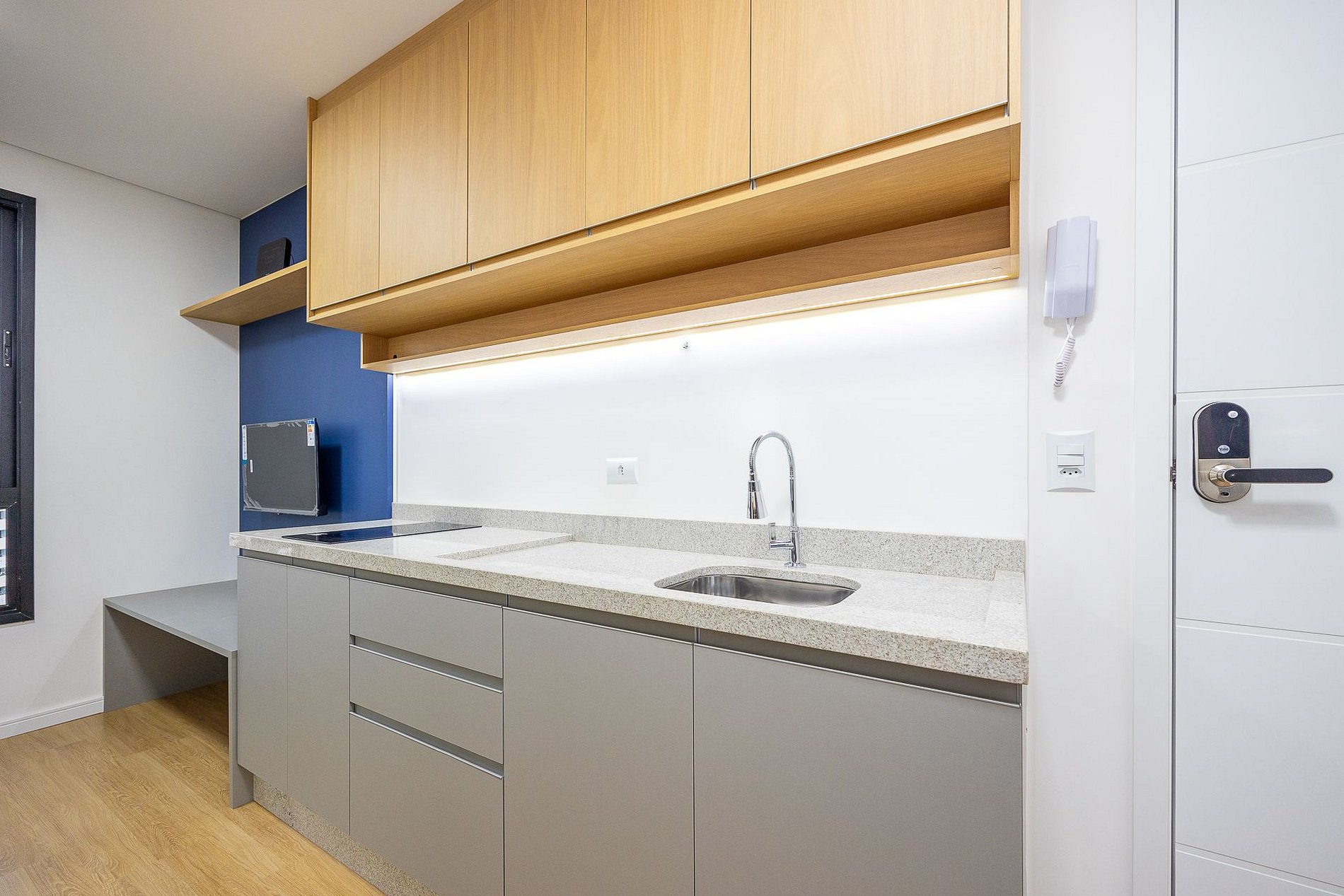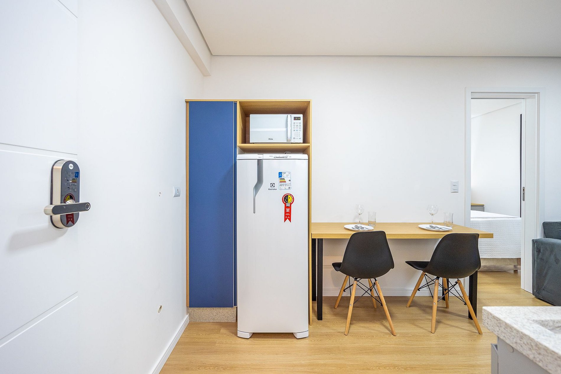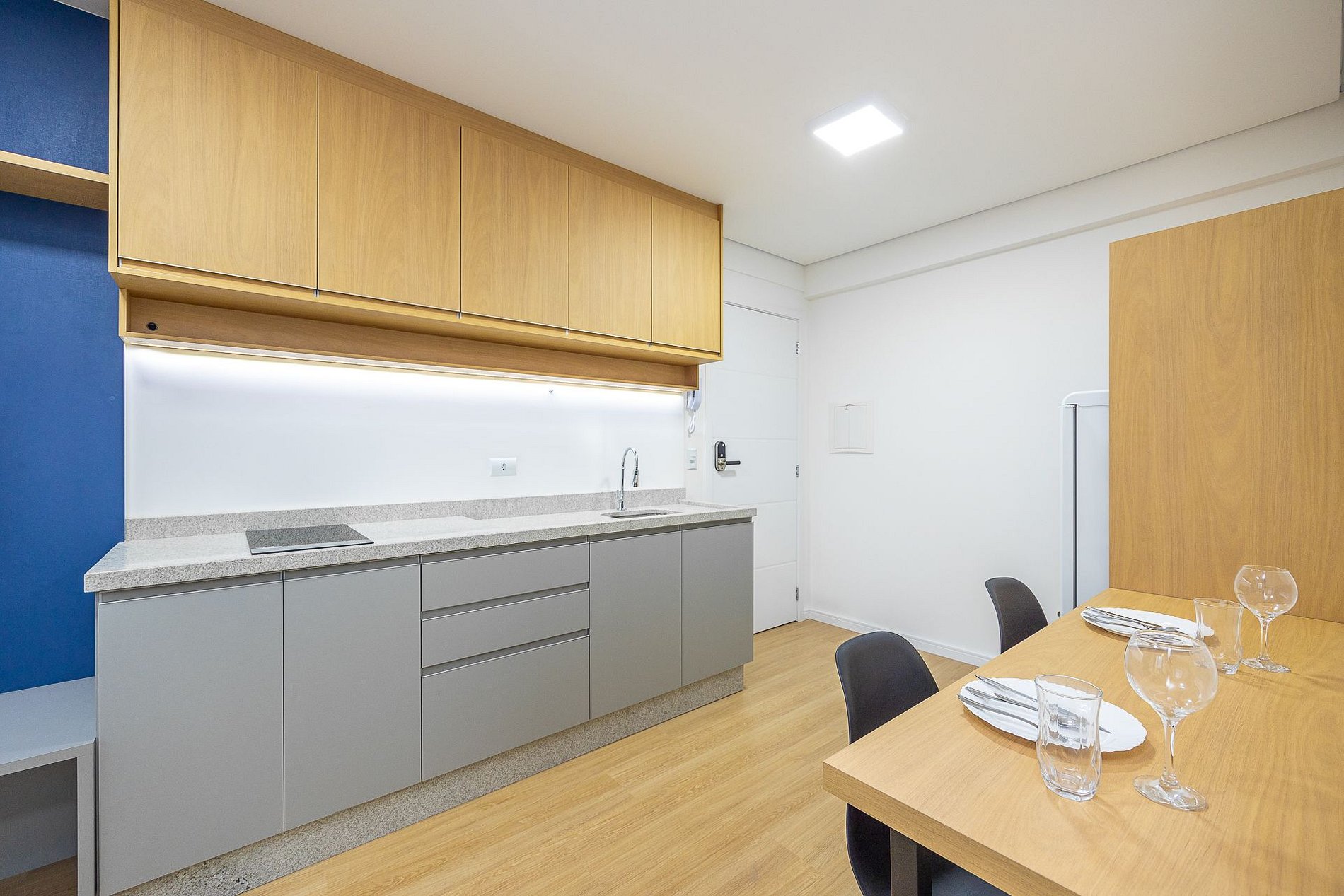 Wi-Fi incluído, Aquecimento a gás, Móveis sob medida, Cama box casal, Smart TV, Cadeiras, Geladeira duplex, Fogão de indução, ,Jogo de panelas, Talheres, Jogo de facas,Louças, Utensílios para cozinha.