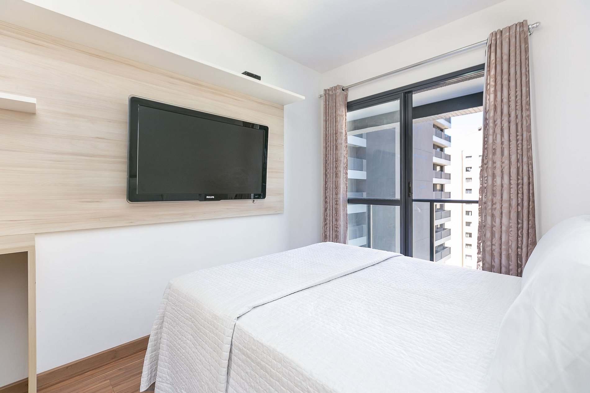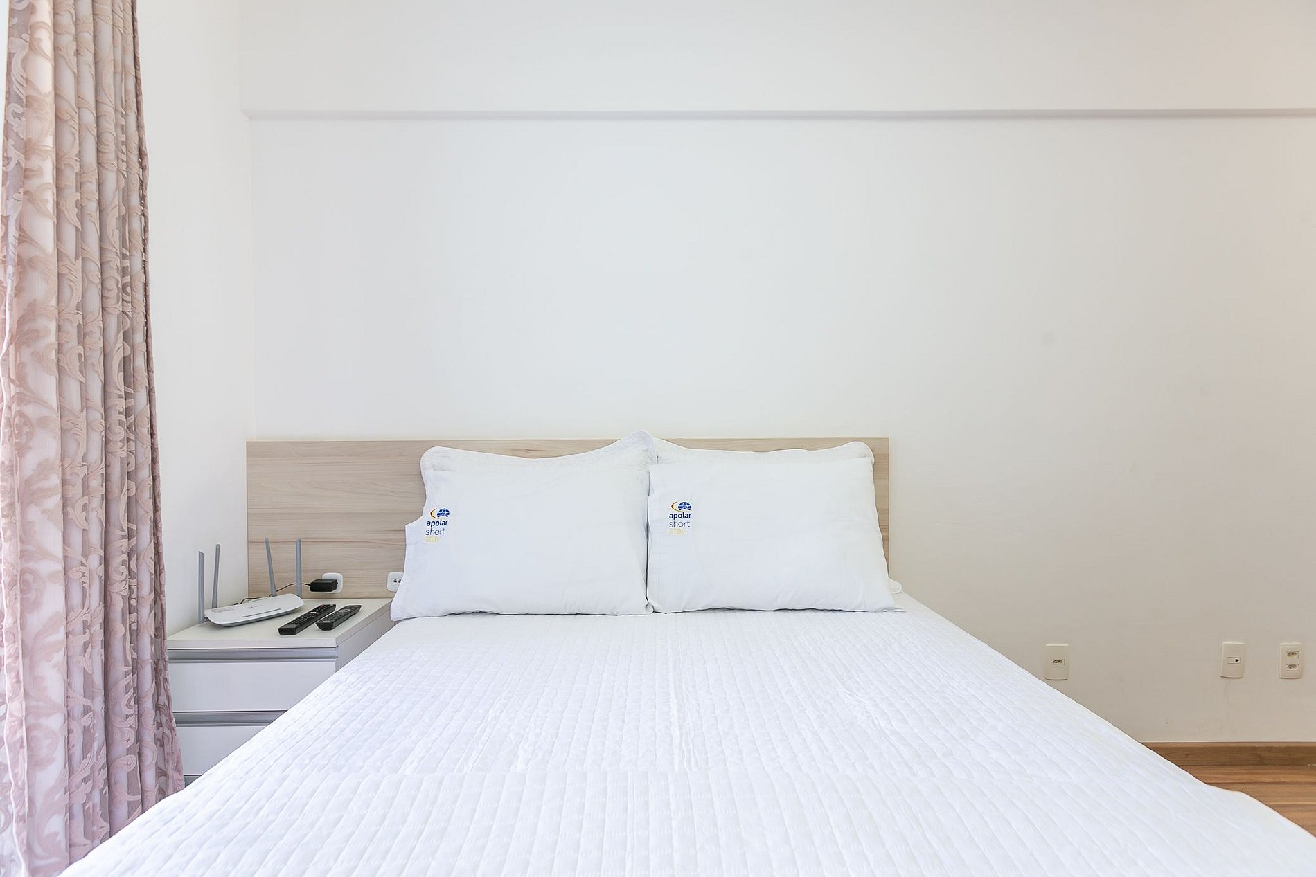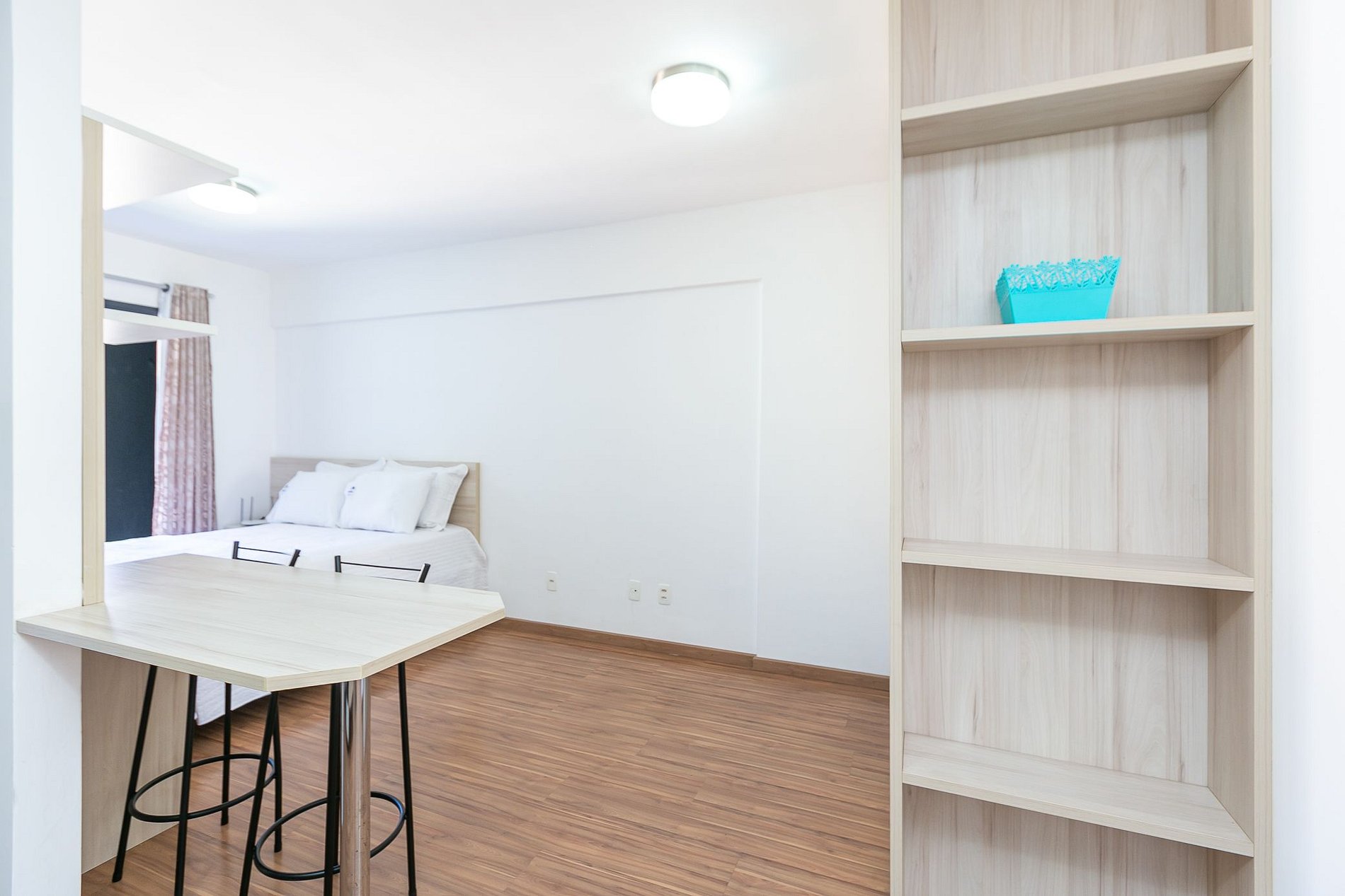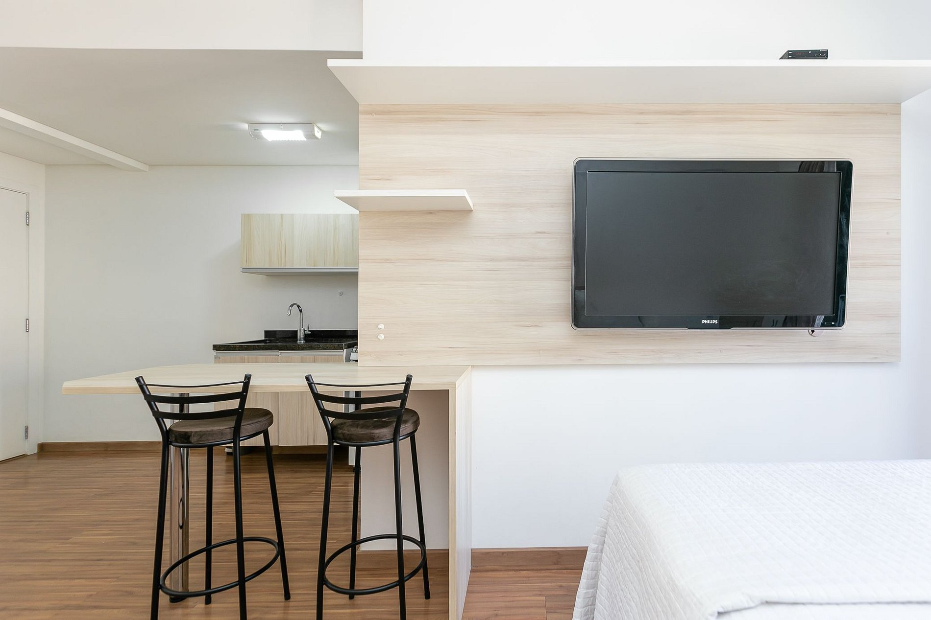 Studio, totalmente mobiliado, no 12º andar, em excelente localização no bairro Bigorrilho, em Curitiba/PR. Decorado, com aproximadamente 25m², conta com: Sacada com churrasqueira, Wi-Fi de alta velocidade, Aquecimento a gás. Cama de casal, roupeiro e mesa de cabeceira. Cozinha completa, com geladeira duplex, fogão a gás, microondas e todos os utensílios. Lavanderia com máquina de lavar, tanque e varal portátil. *Roupas de cama, mesa e banho não estão incluídas.