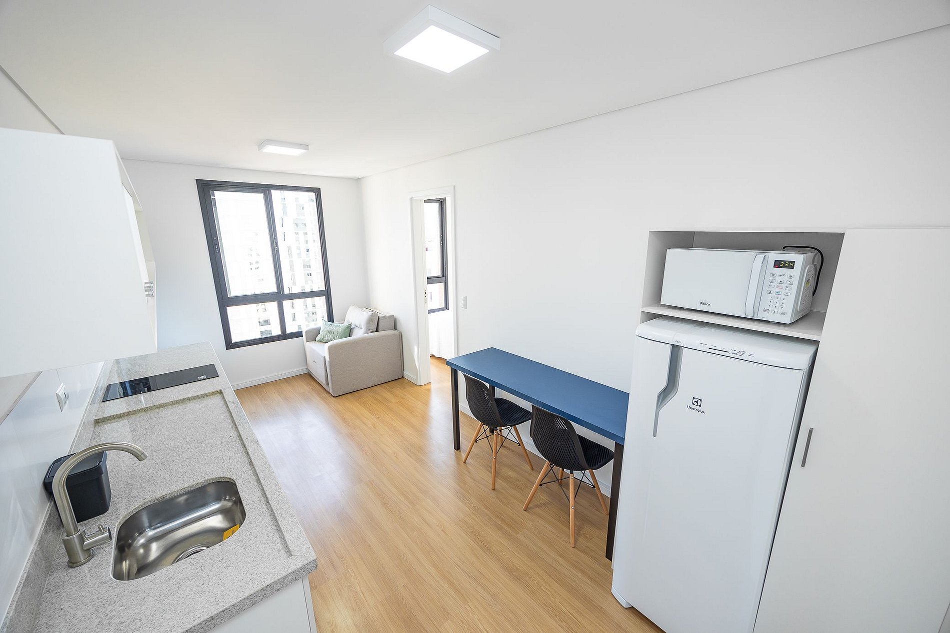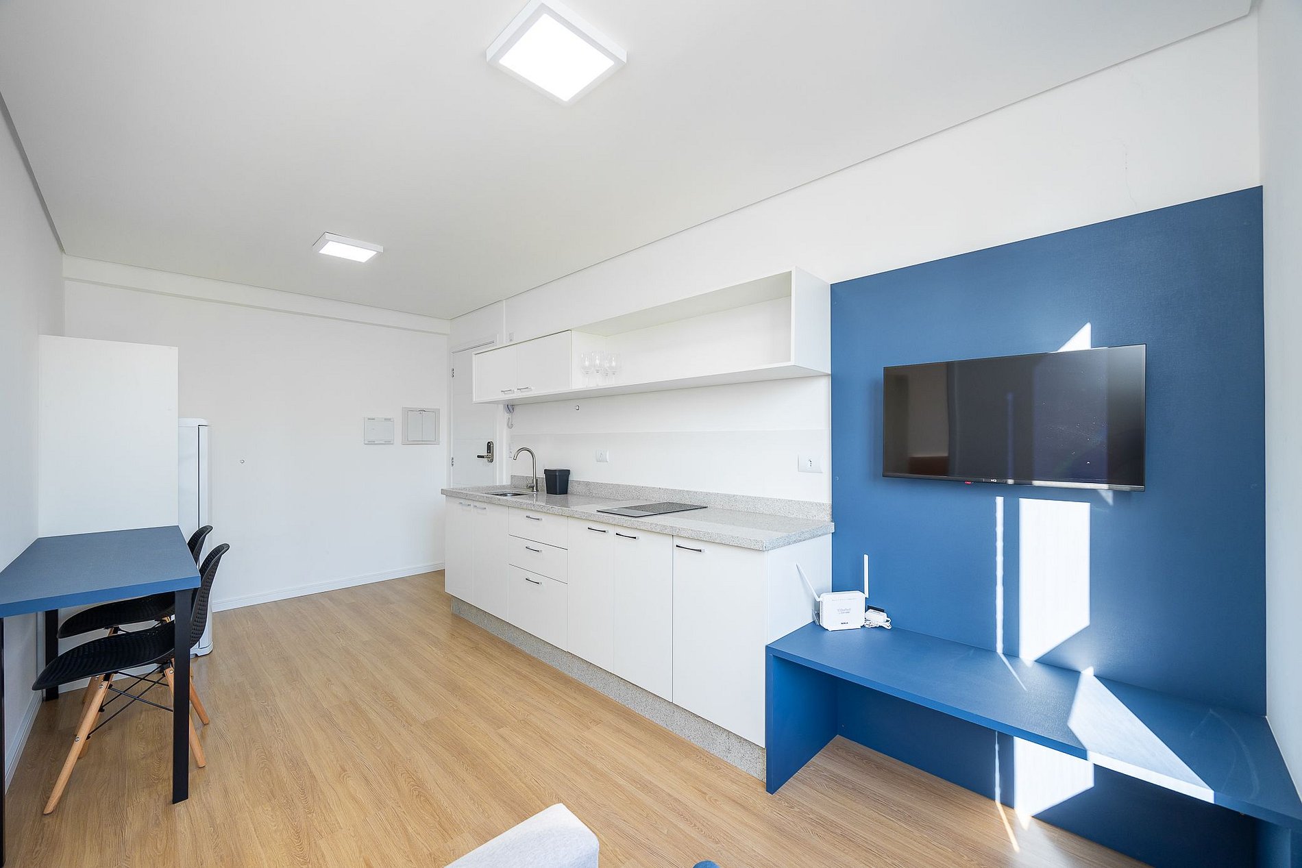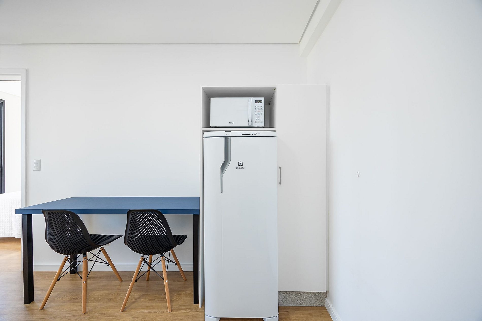Wi-Fi incluído, Aquecimento a gás, Móveis sob medida, Cama box casal, Smart TV, Cadeiras, Geladeira, Fogão de indução, ,Jogo de panelas, Talheres, Jogo de facas,Louças, Utensílios para cozinha.
