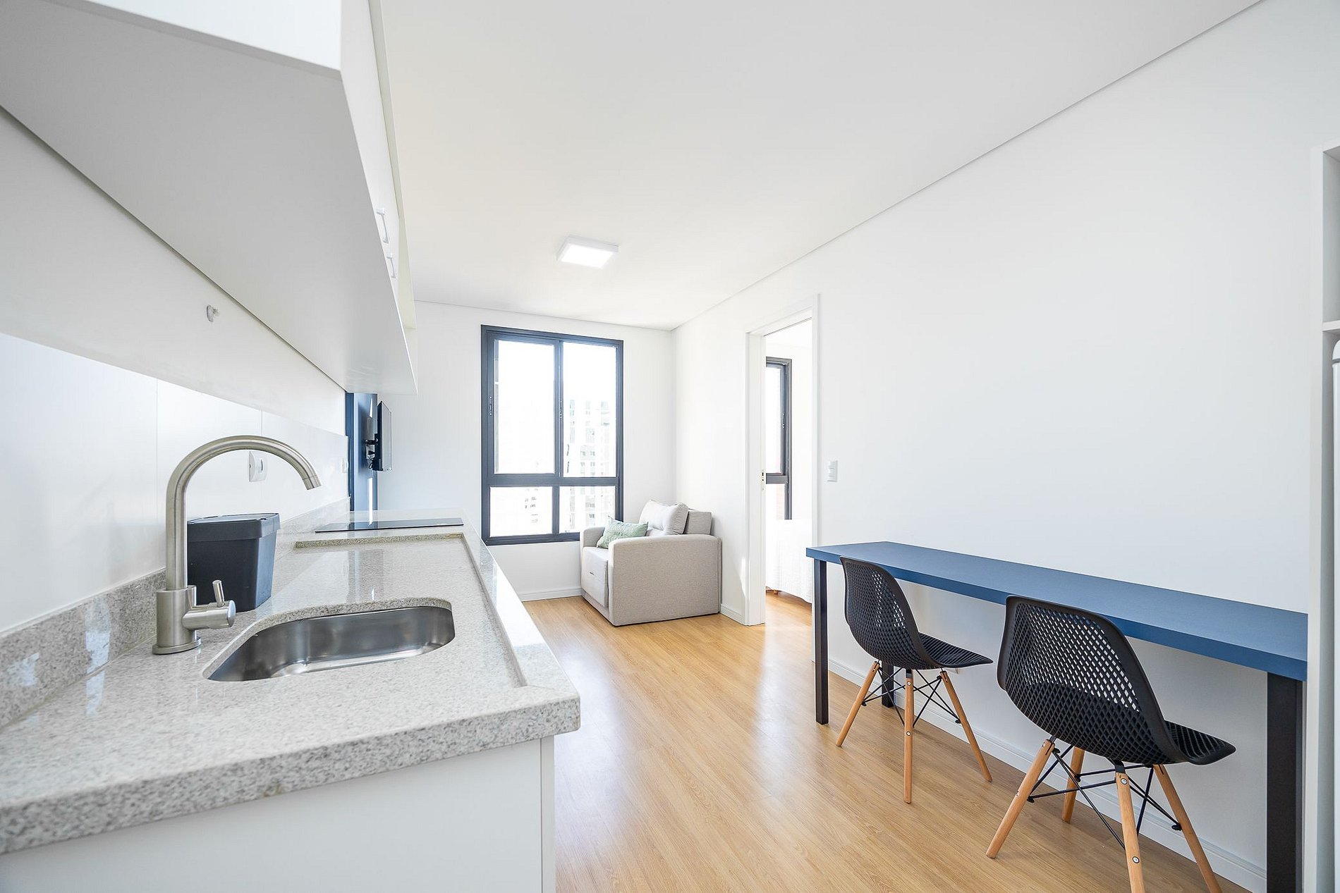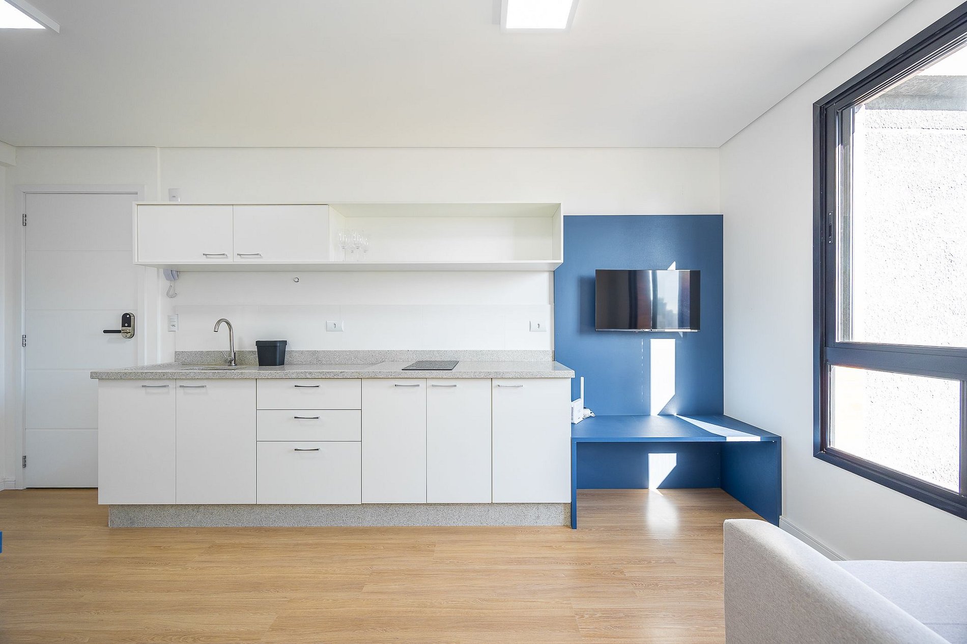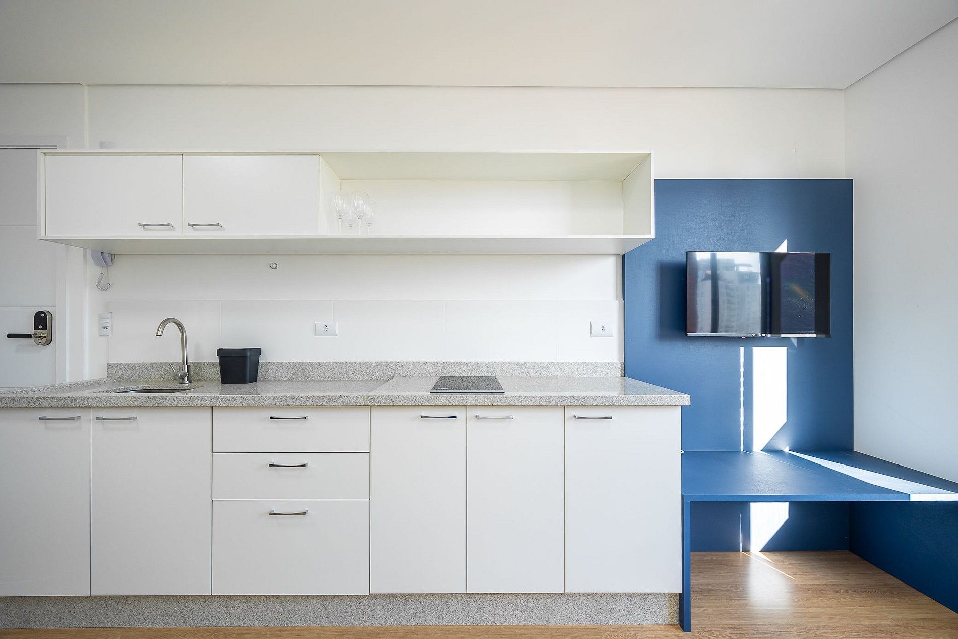 Wi-Fi incluído, Aquecimento a gás, Móveis sob medida, Cama box casal, Smart TV, Cadeiras, Geladeira, Fogão de indução, ,Jogo de panelas, Talheres, Jogo de facas,Louças, Utensílios para cozinha.
