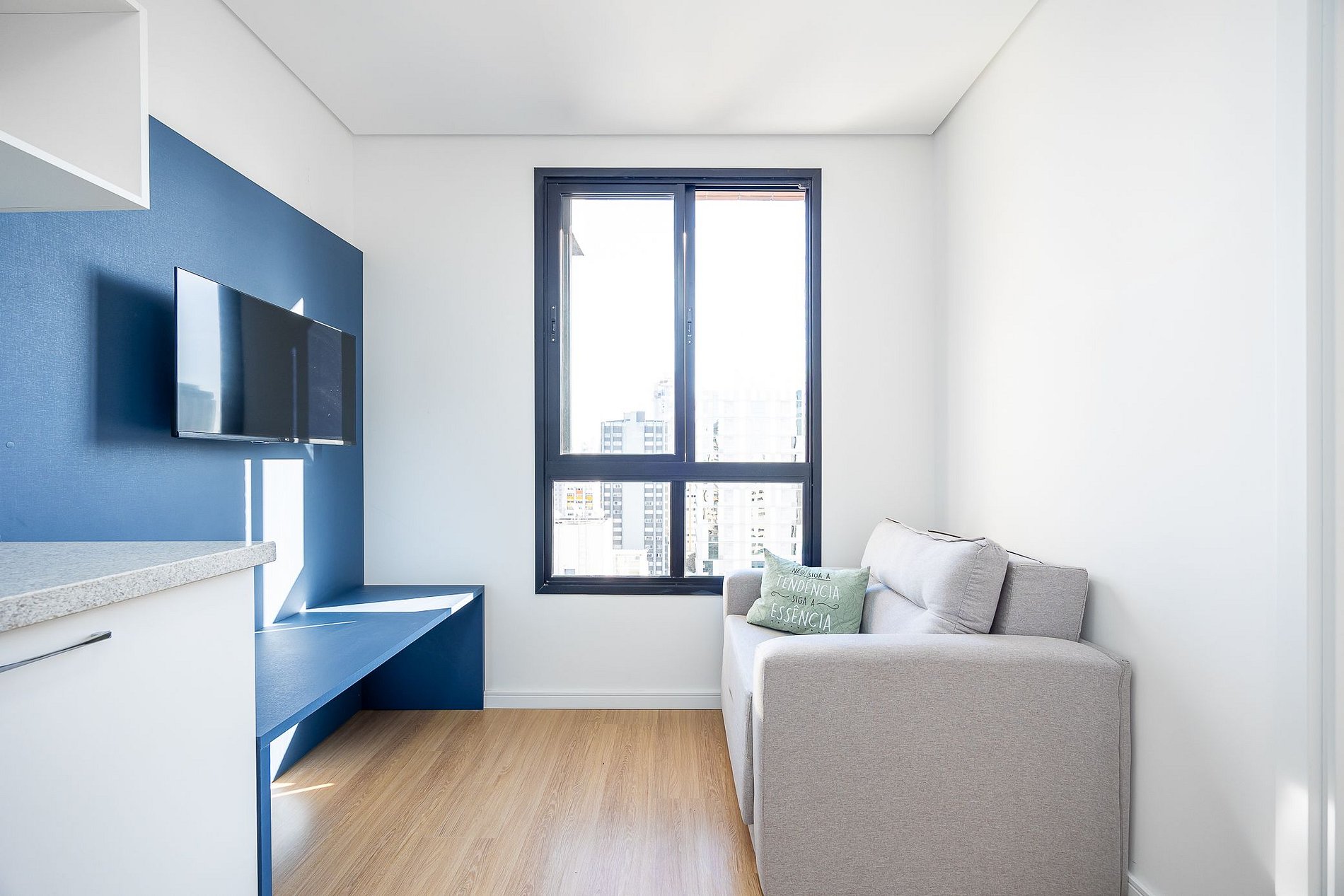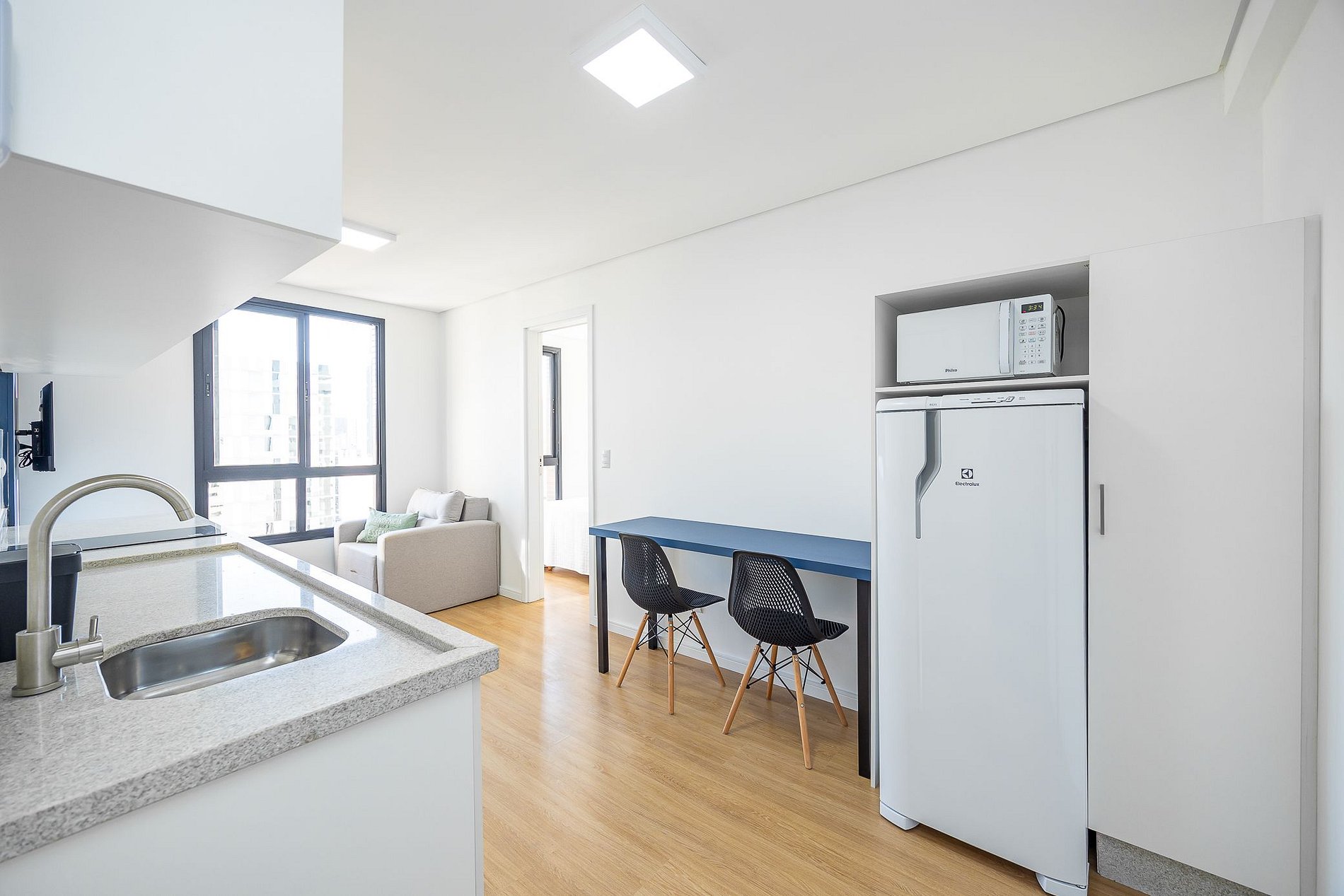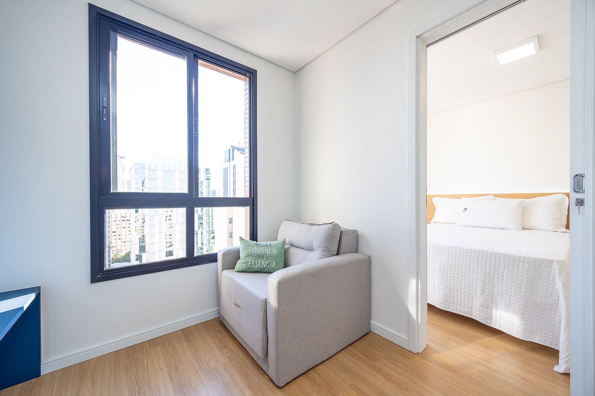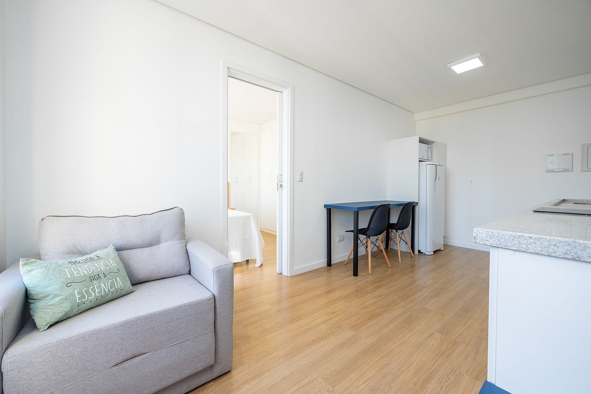 Studio totalmente mobiliado, no 15º andar, em excelente localização no centro de Curitiba/PR. Finamente decorado, com aproximadamente 33m², conta com: