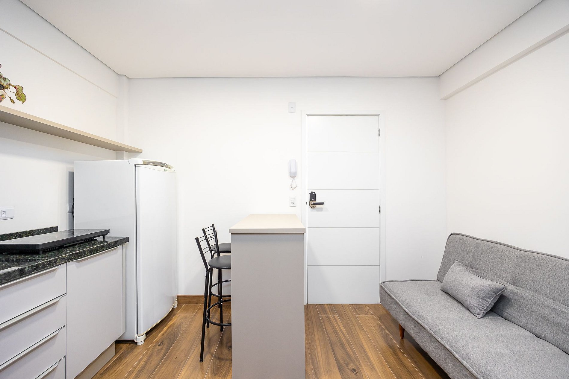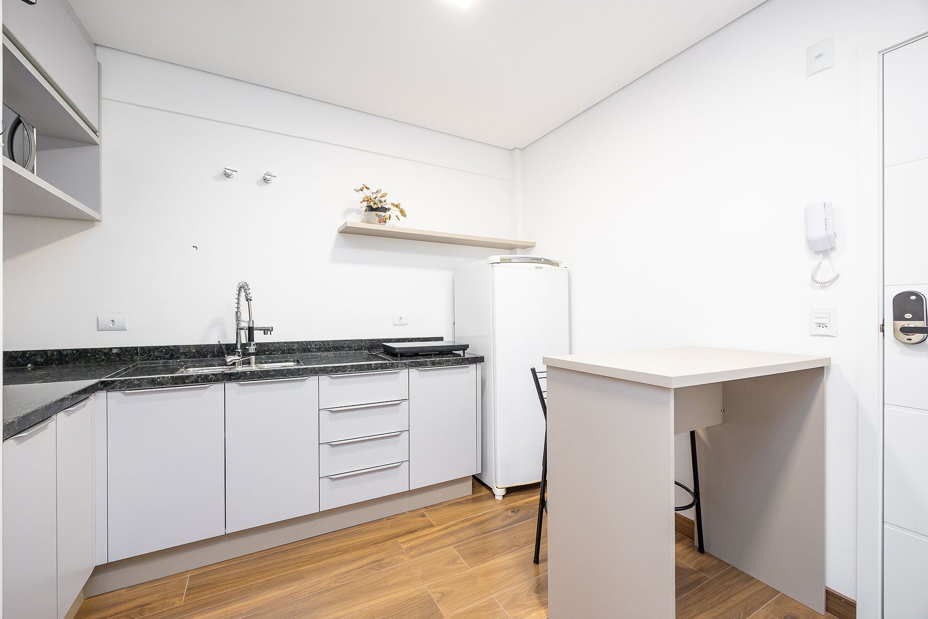 Studio totalmente mobiliado, no 12º andar, em excelente localização no centro de Curitiba/PR. Finamente decorado, com aproximadamente 23m², conta com: