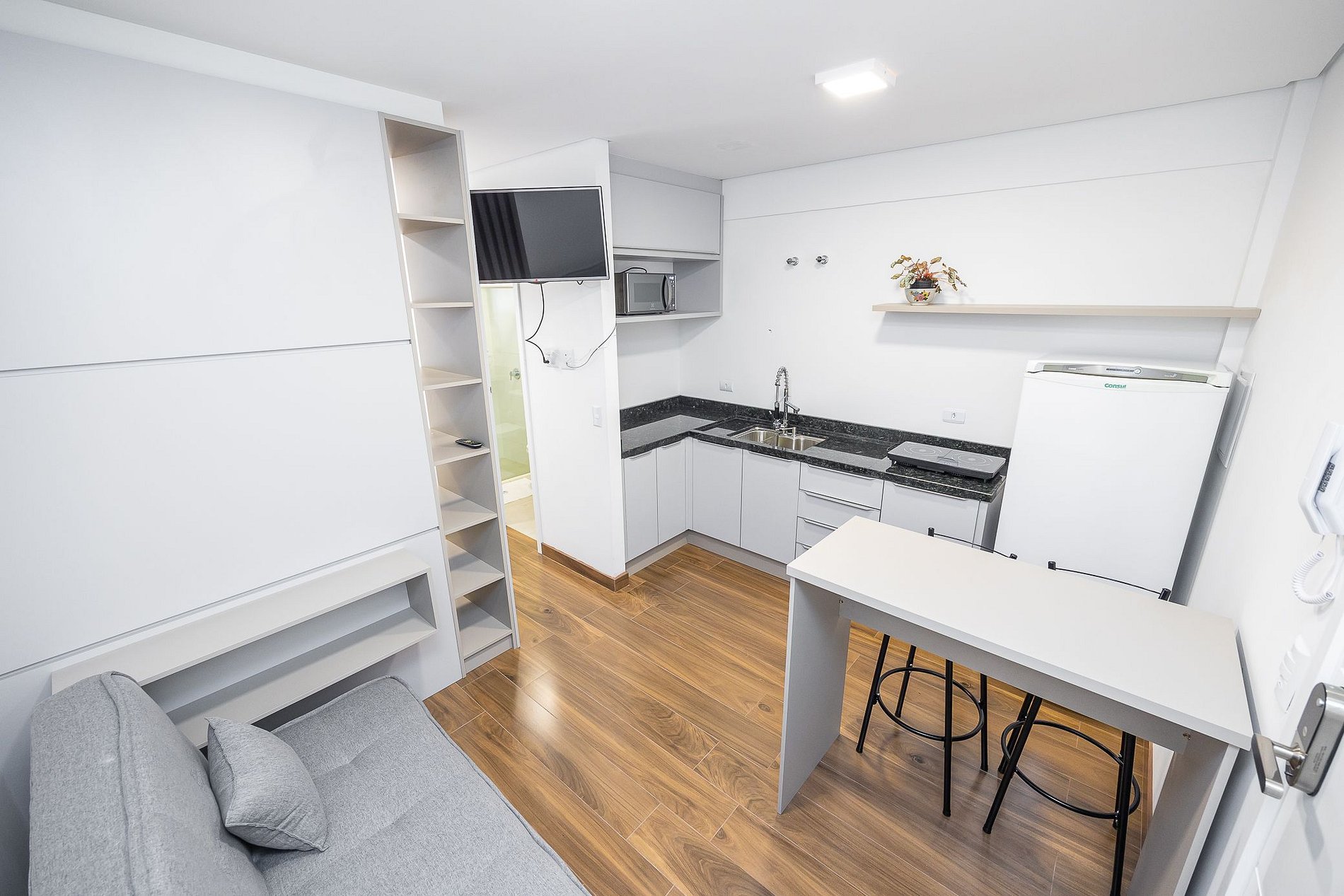 Wi-Fi incluído, Aquecimento elétrico, Móveis sob medida, Cama box casal, Smart TV, Cadeiras, geladeira, Fogão de indução de 2 bocas, ,Jogo de panelas, Talheres, Jogo de facas, louças, utensílios para cozinha e ar condicionado.