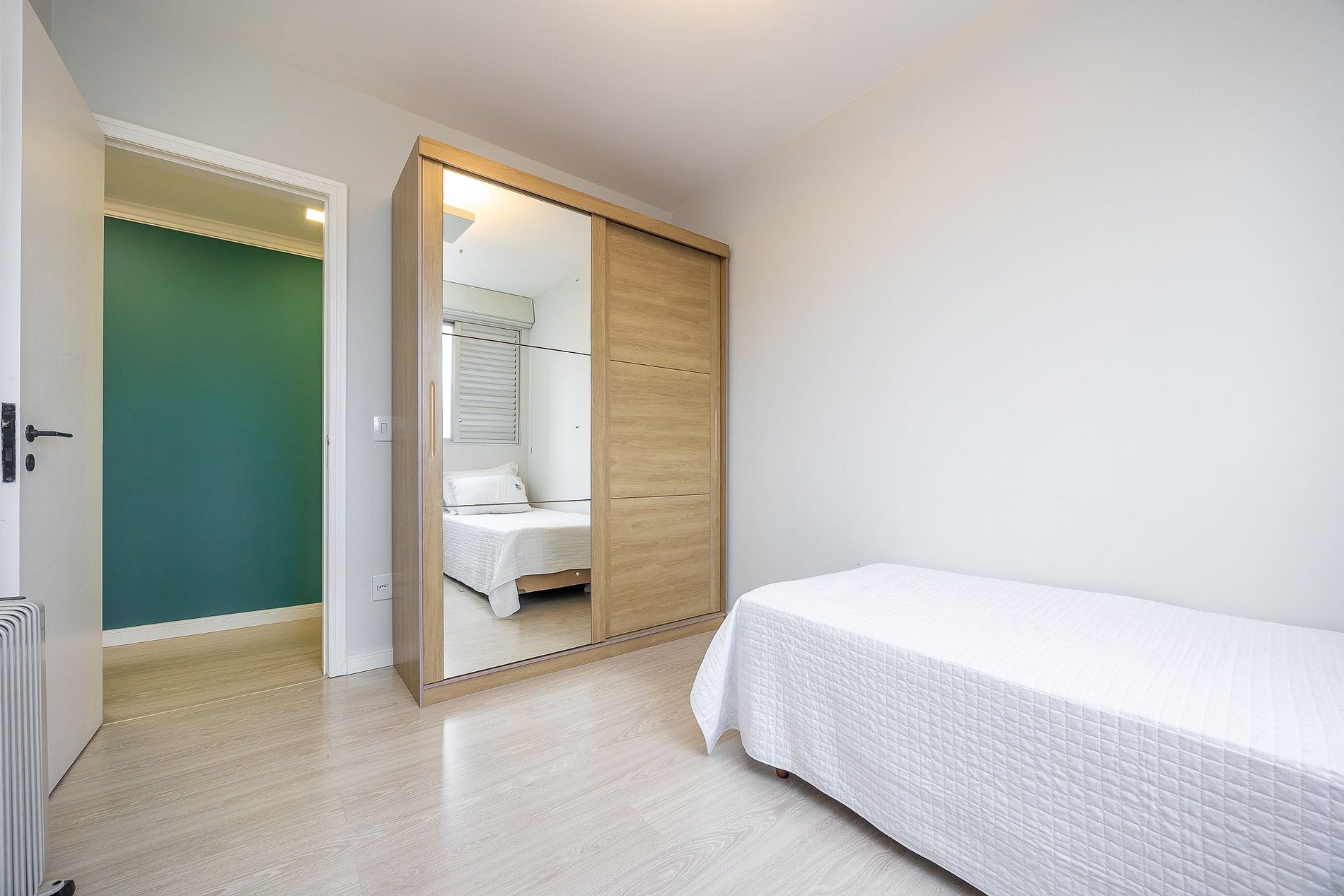 Segundo quarto com uma cama de solteiro e roupeiro.