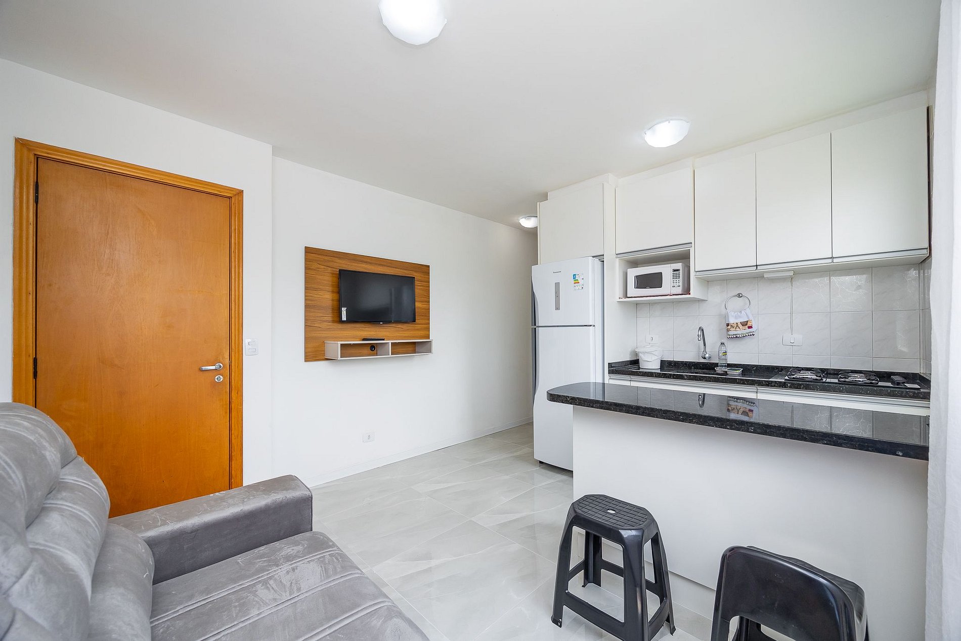 Studio totalmente mobiliado, no 5º andar, em excelente localização no Jardim Botânico em Curitiba/PR. Conta com: