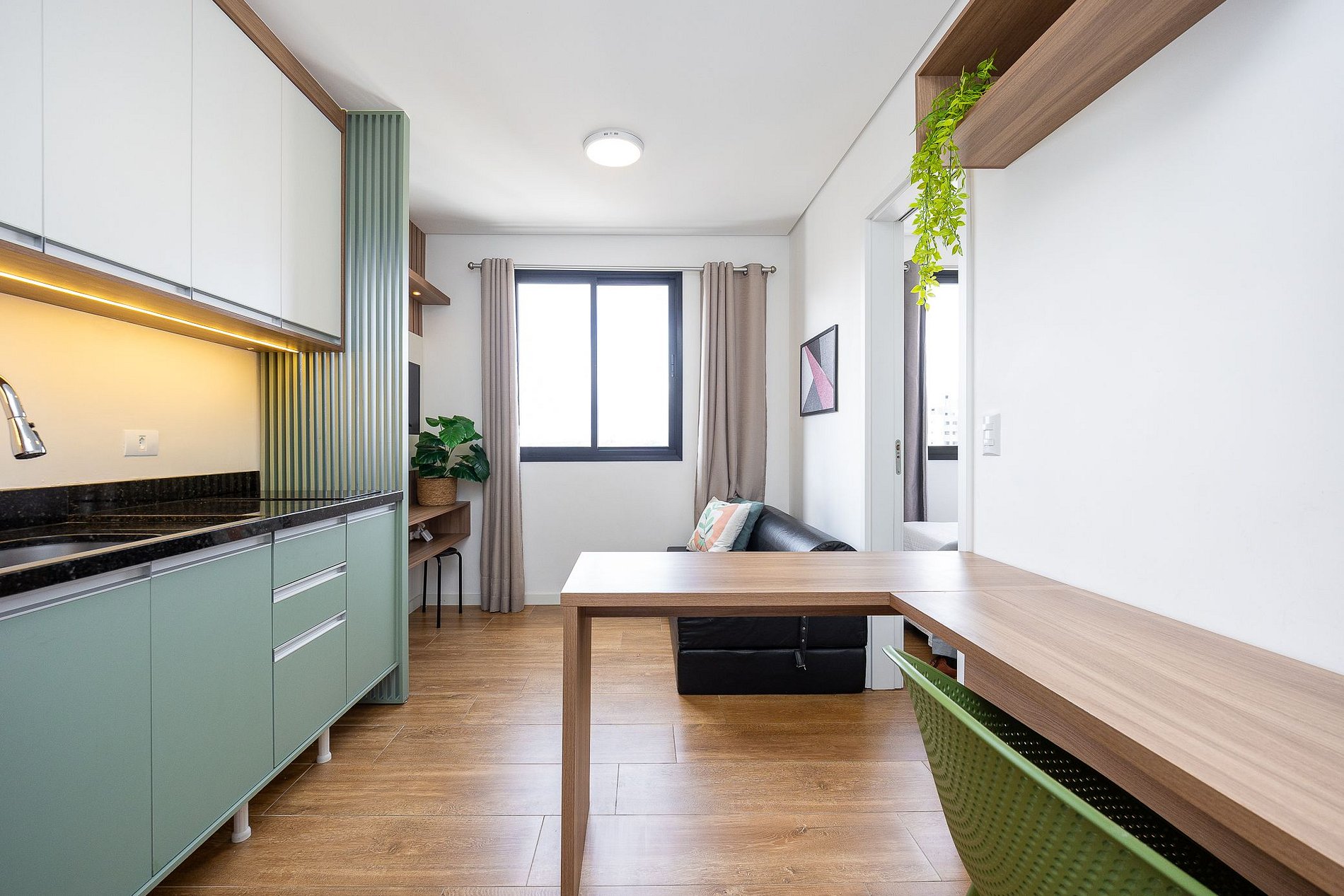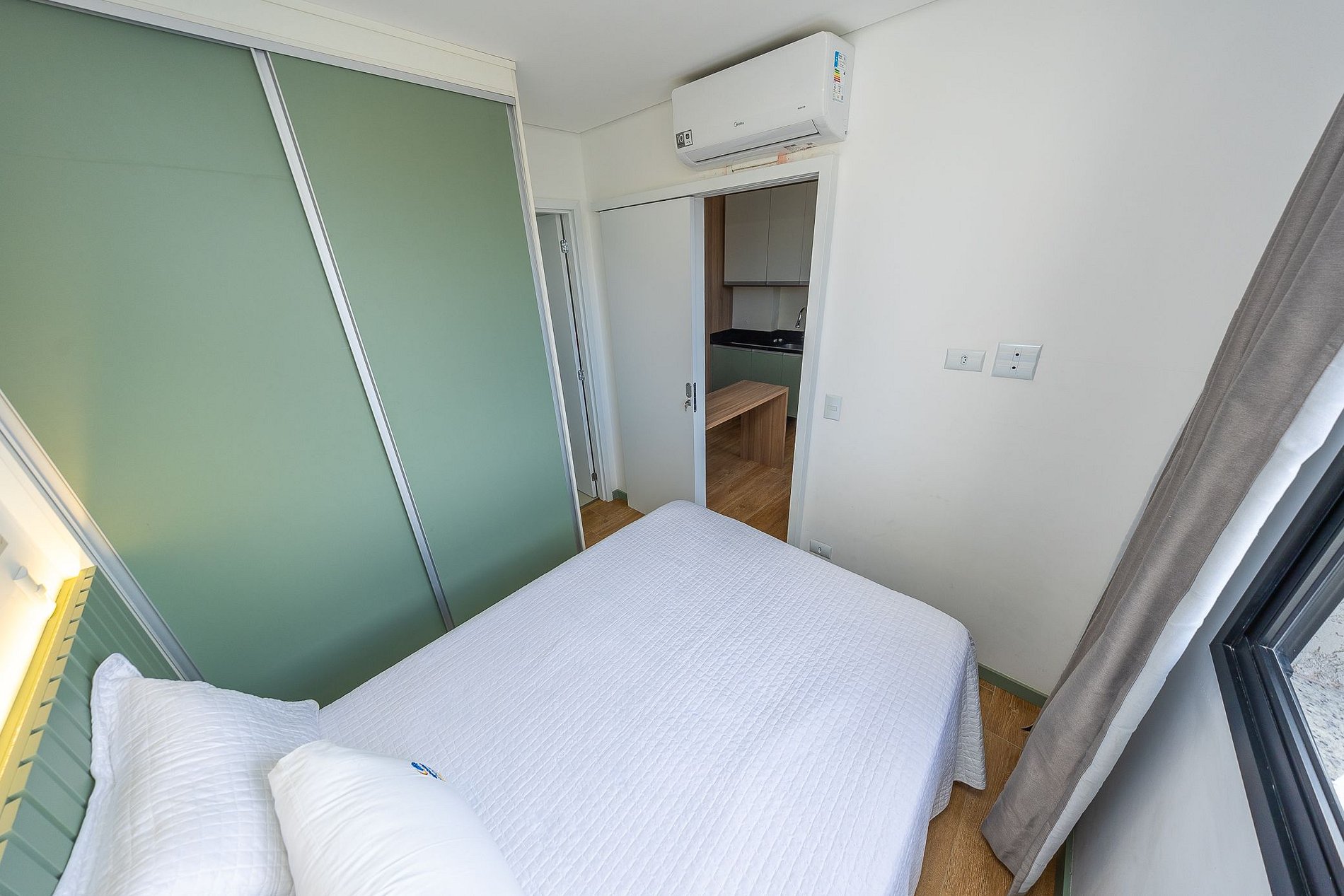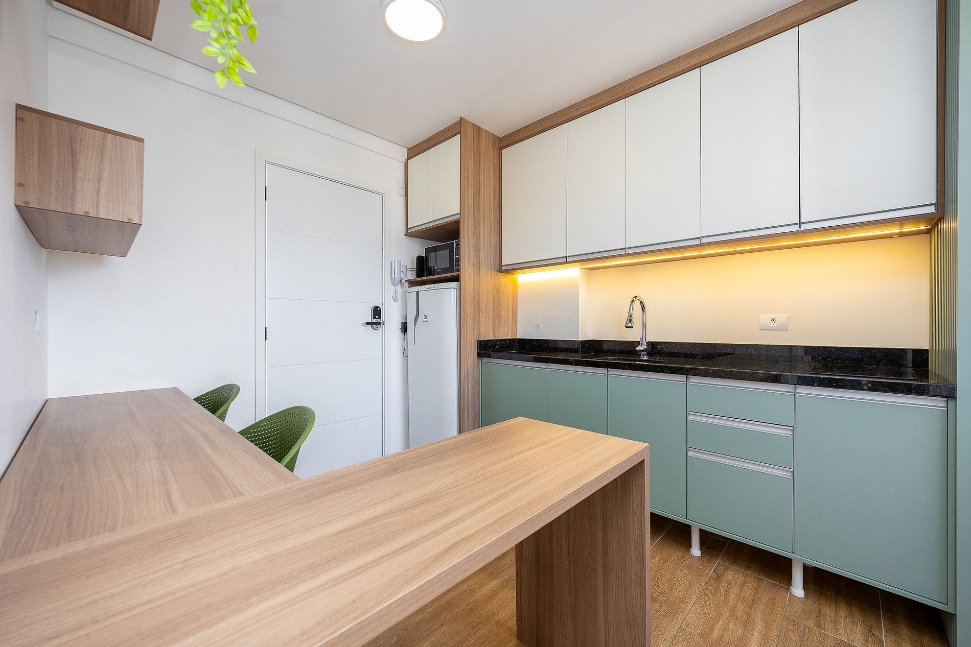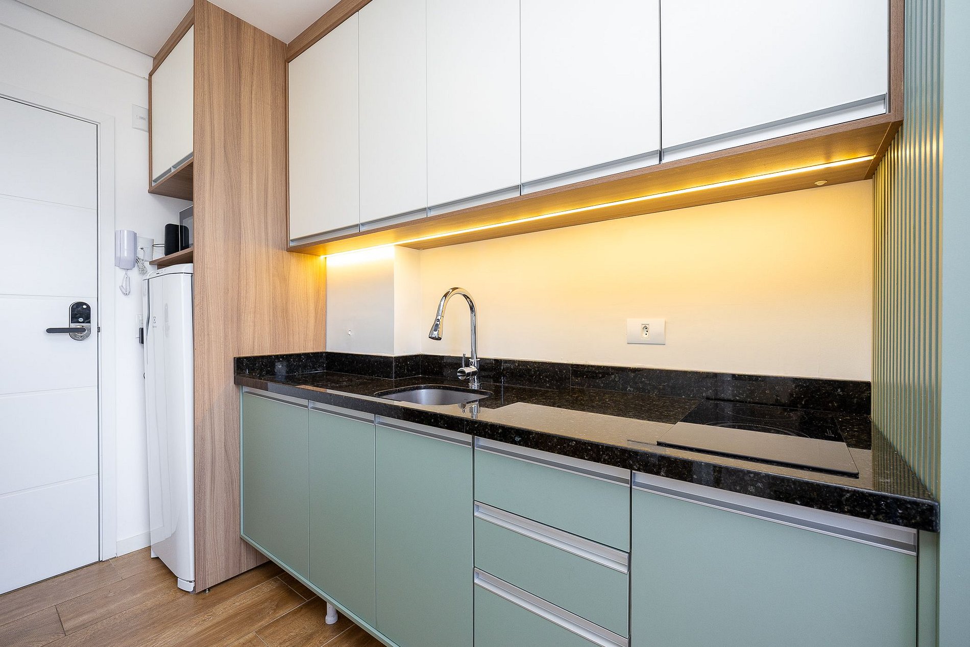 Studio totalmente mobiliado, no 14º andar, em excelente localização no centro de Curitiba/PR. Finamente decorado, com aproximadamente 29m², conta com: