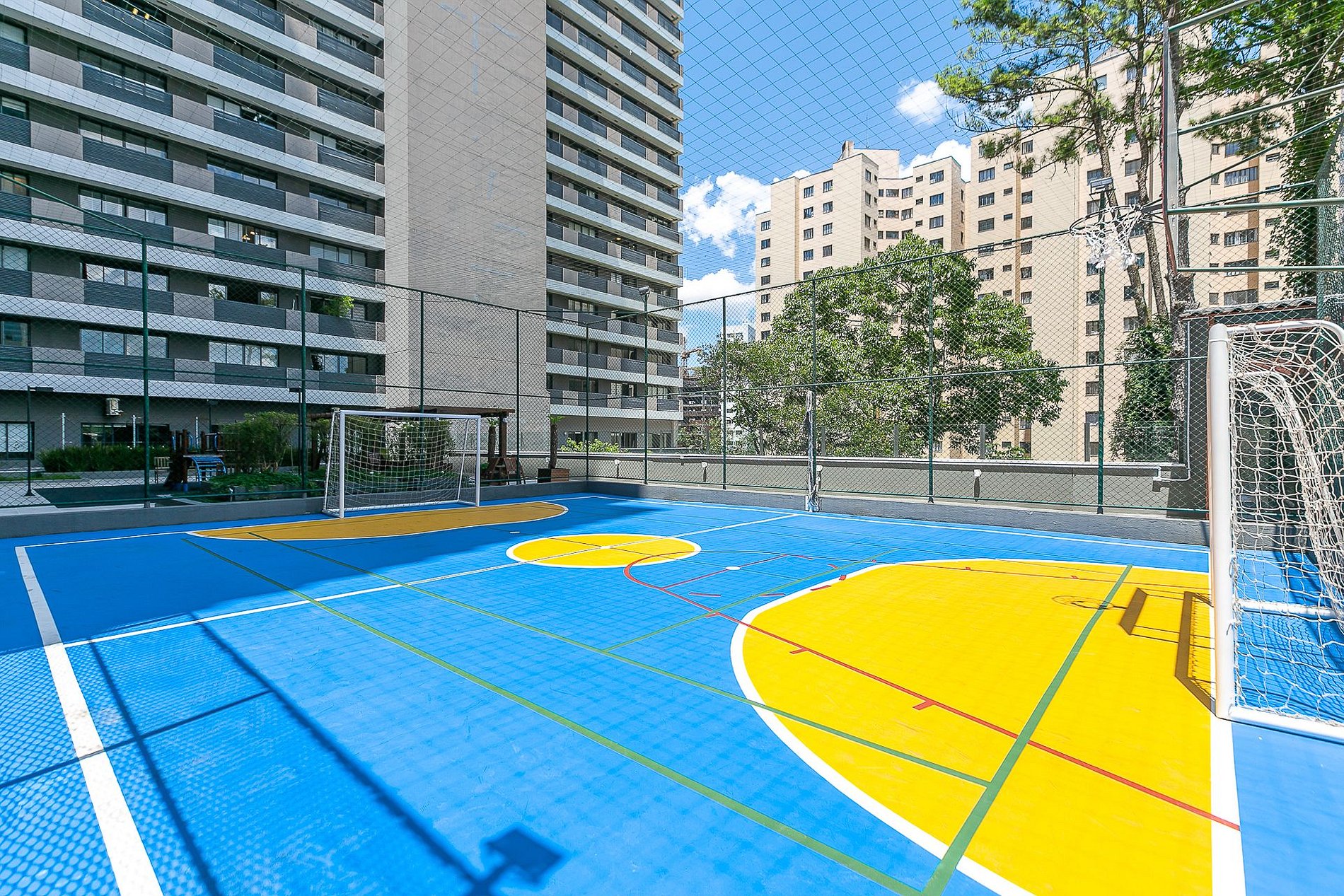 A área comum do condomínio possui: 4 salões de festas, academia, piscina aquecida, sauna, brinquedoteca, churrasqueira, lounge, lavanderia, quadra poliesportiva, entre outros.