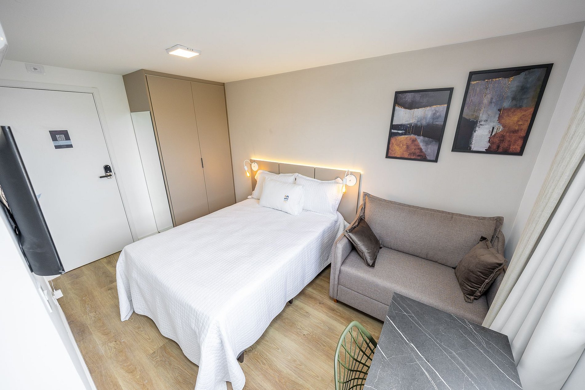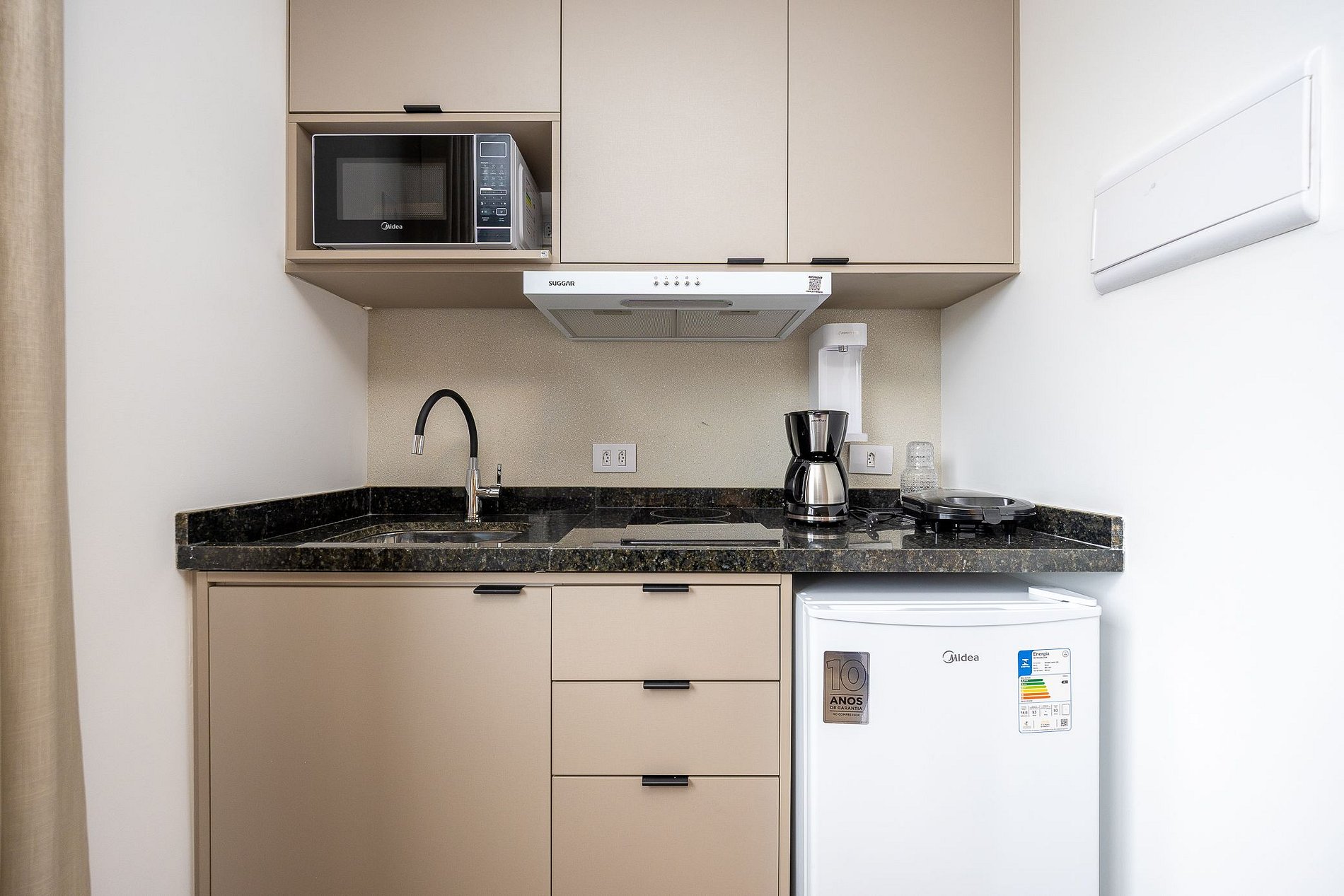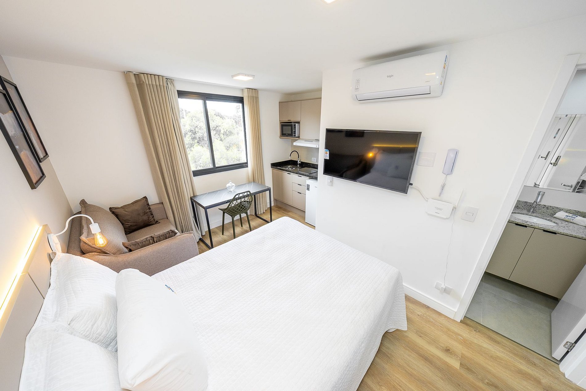 Sobre o apartamento: Studio totalmente mobiliado, no 3º andar, em excelente localização no Rebouças em Curitiba/PR. Finamente decorado, com aproximadamente 17m², conta com: Wi-Fi incluído, Aquecimento central, Móveis sob medida, Cama box casal, Smart TV, frigobar, Fogão de indução de 2 bocas, micro-ondas, Jogo de panelas, Talheres, Jogo de facas, Louças, Utensílios para cozinha. Região com facilidades e comodidades. *Roupas de cama, mesa e banho não estão incluídas. O que está incluído no pacote mensal*: Aluguel, condomínio, água, gás, internet e energia eléctrica. O pacote mensal é calculado com base no consumo médio dos meses anteriores e consumos muito elevados poderão gerar cobrança adicional.