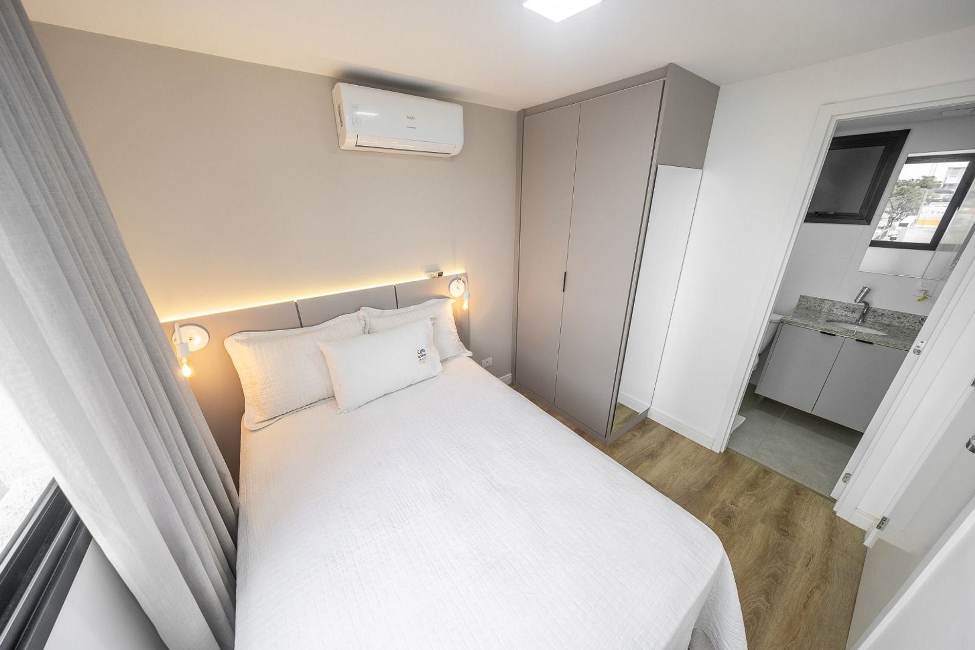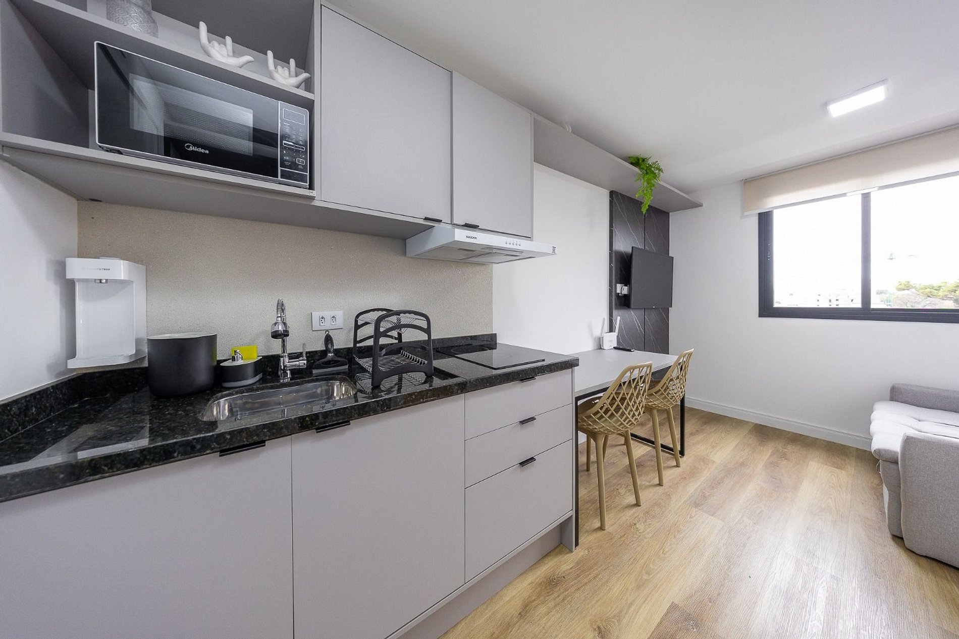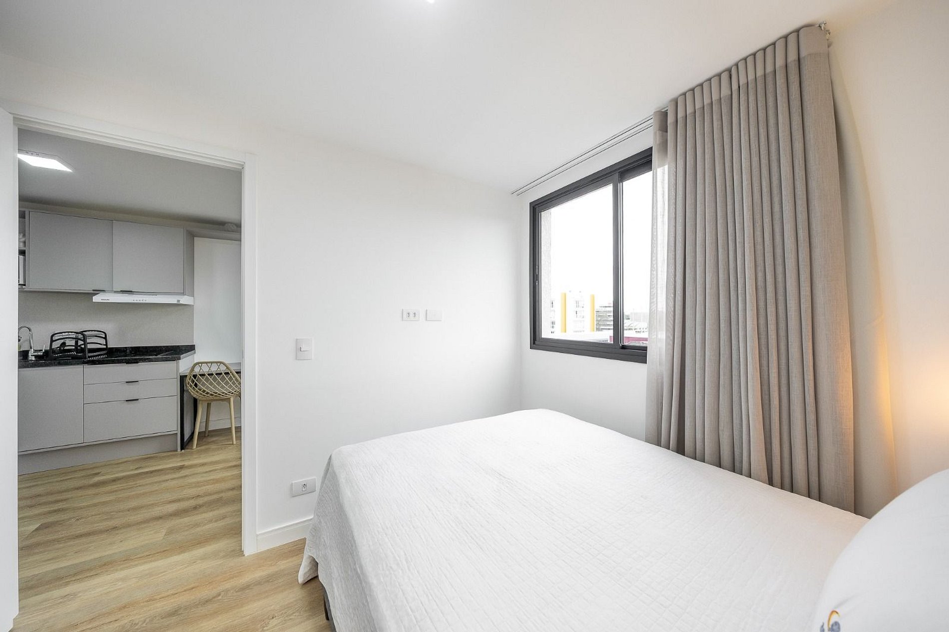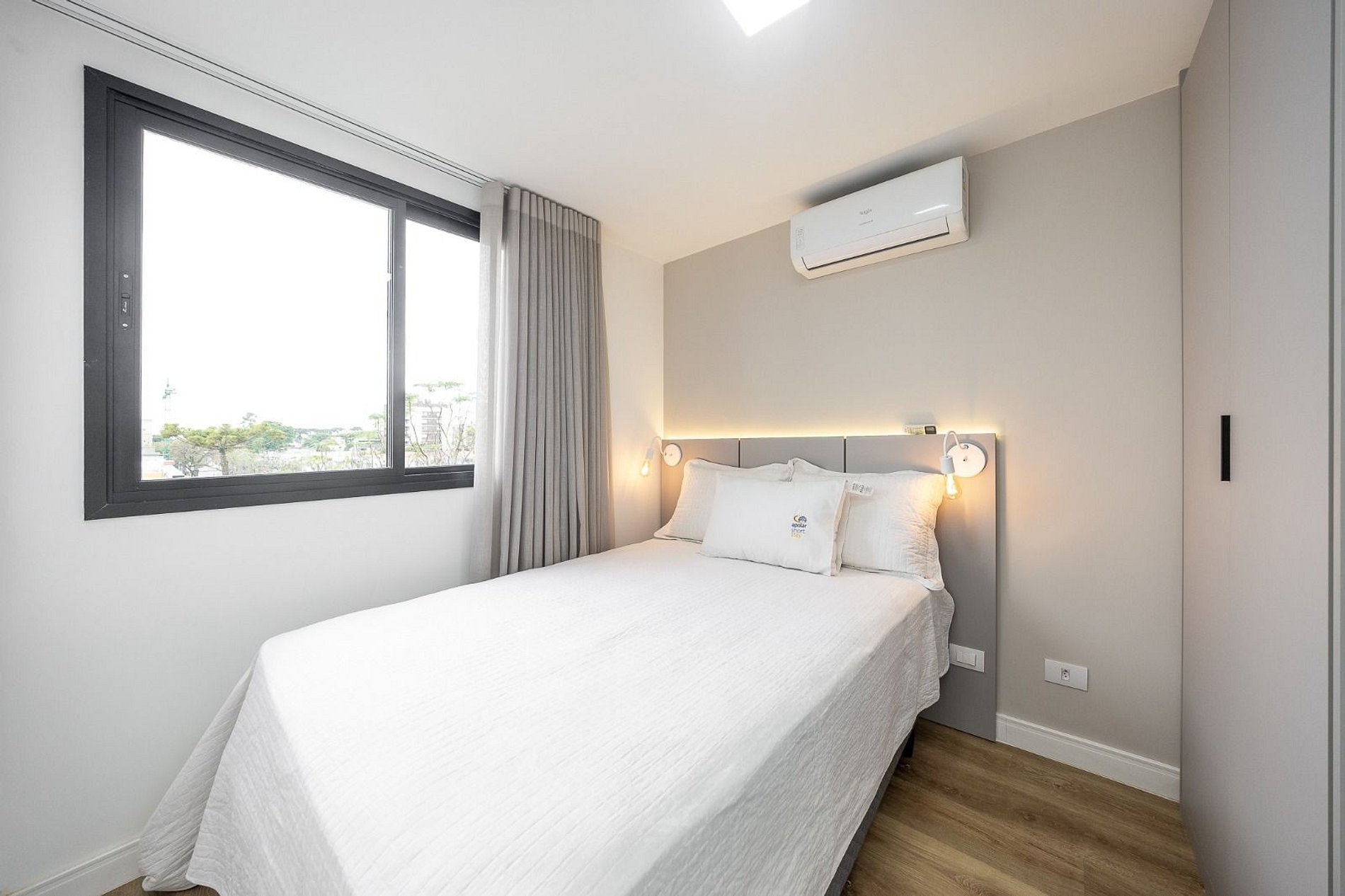 Sobre o apartamento: Studio totalmente mobiliado, no 3º andar, em excelente localização no Rebouças em Curitiba/PR. Finamente decorado, com aproximadamente 17m², conta com: Wi-Fi incluído, Aquecimento central, Móveis sob medida, Cama box casal, Smart TV, frigobar, Fogão de indução de 2 bocas, micro-ondas, Jogo de panelas, Talheres, Jogo de facas, Louças, Utensílios para cozinha. Região com facilidades e comodidades. *Roupas de cama, mesa e banho não estão incluídas. O que está incluído no pacote mensal*: Aluguel, condomínio, água, gás, internet e energia eléctrica. O pacote mensal é calculado com base no consumo médio dos meses anteriores e consumos muito elevados poderão gerar cobrança adicional.