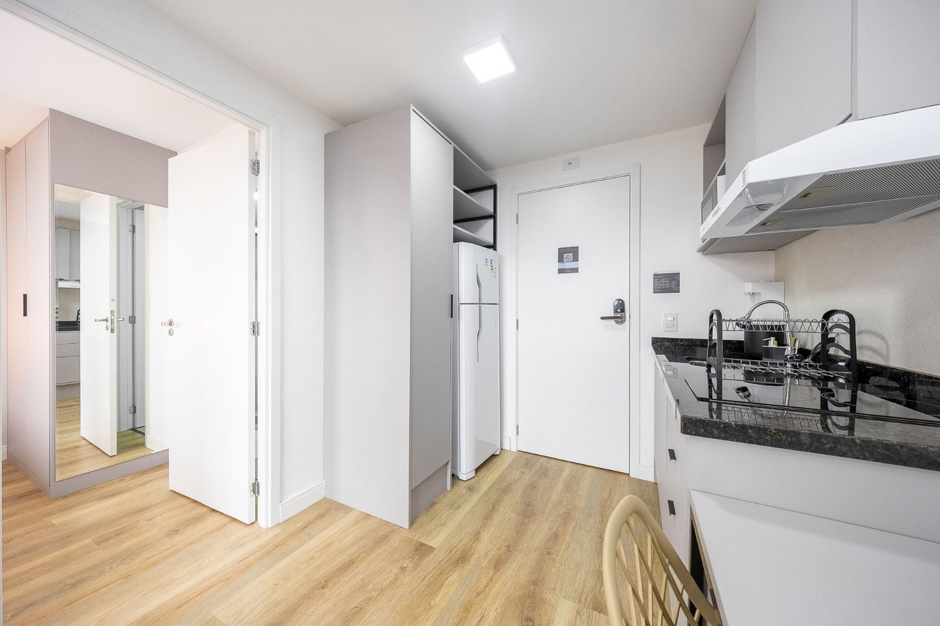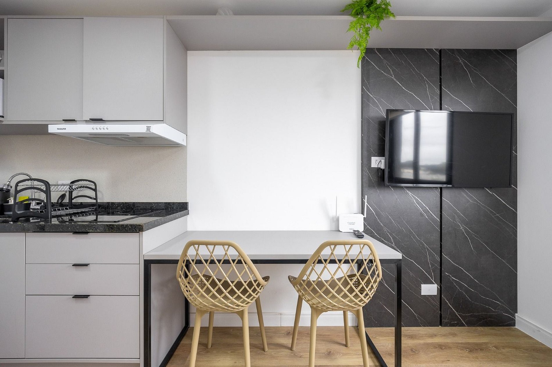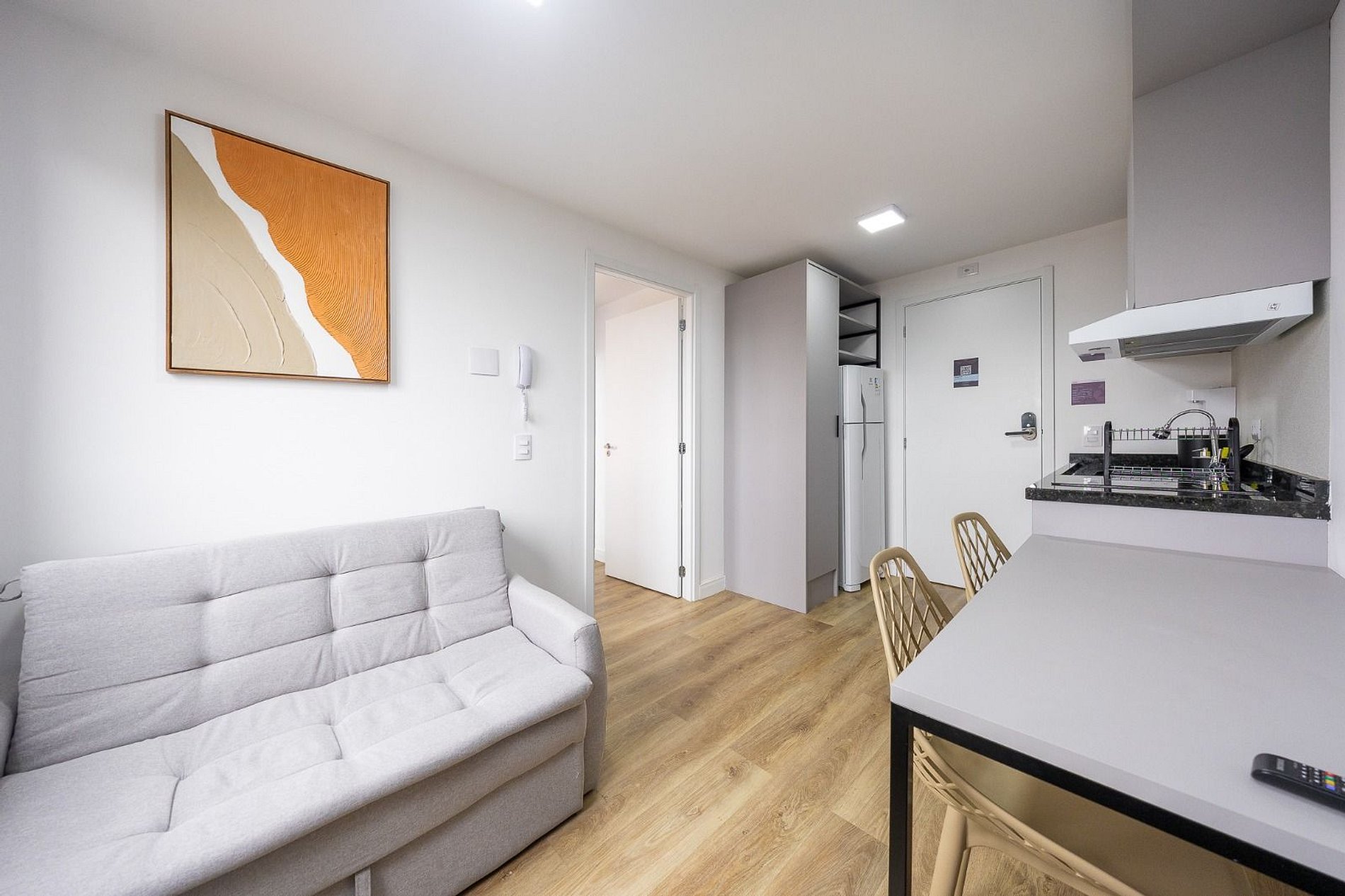 Sobre o apartamento: Studio totalmente mobiliado, no 3º andar, em excelente localização no Rebouças em Curitiba/PR. Finamente decorado, com aproximadamente 17m², conta com: Wi-Fi incluído, Aquecimento central, Móveis sob medida, Cama box casal, Smart TV, frigobar, Fogão de indução de 2 bocas, micro-ondas, Jogo de panelas, Talheres, Jogo de facas, Louças, Utensílios para cozinha. Região com facilidades e comodidades. *Roupas de cama, mesa e banho não estão incluídas. O que está incluído no pacote mensal*: Aluguel, condomínio, água, gás, internet e energia eléctrica. O pacote mensal é calculado com base no consumo médio dos meses anteriores e consumos muito elevados poderão gerar cobrança adicional.