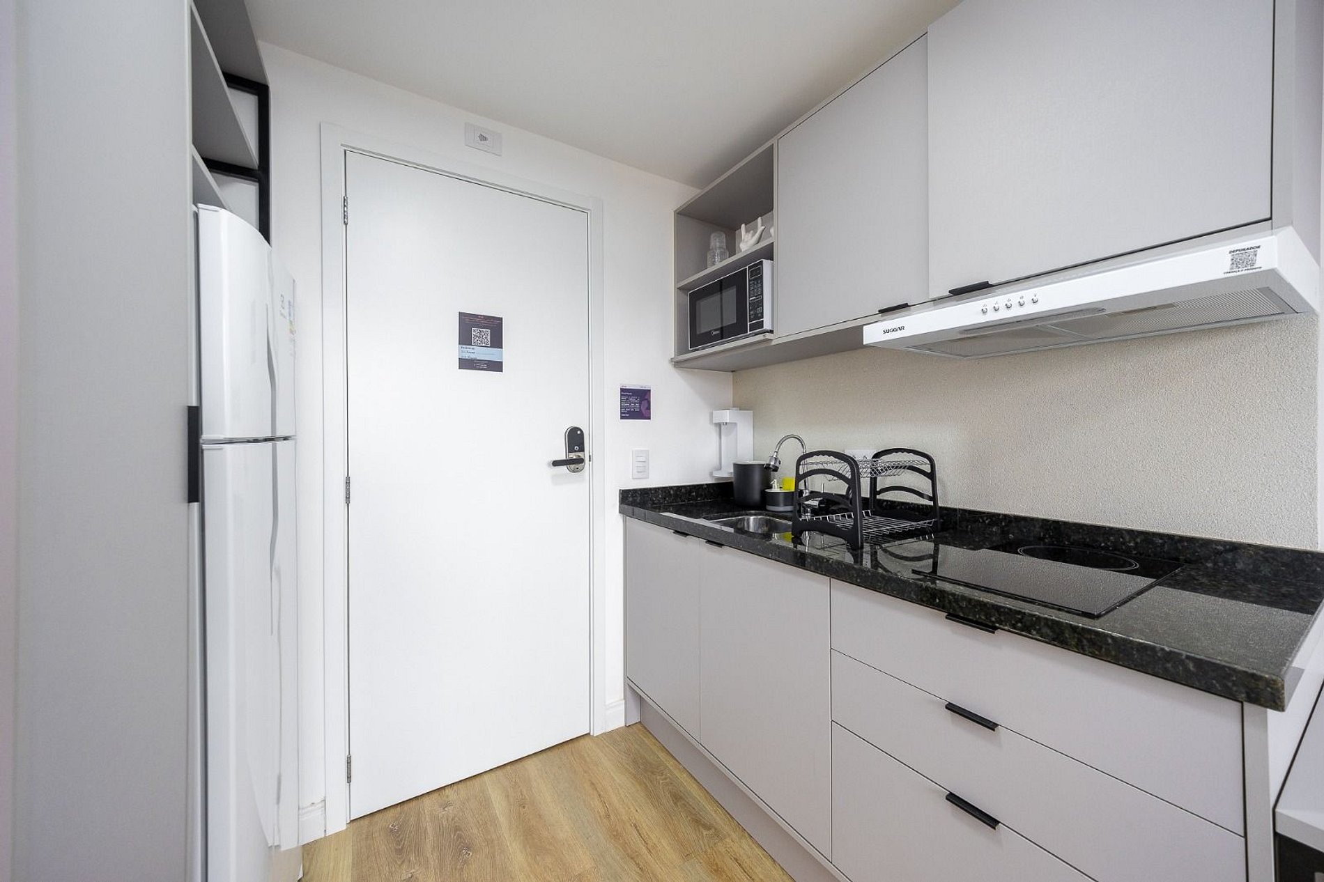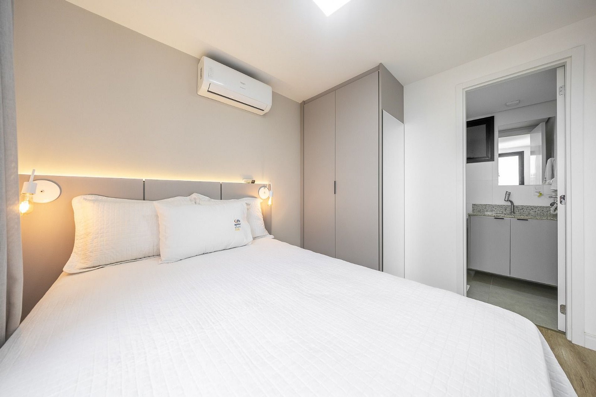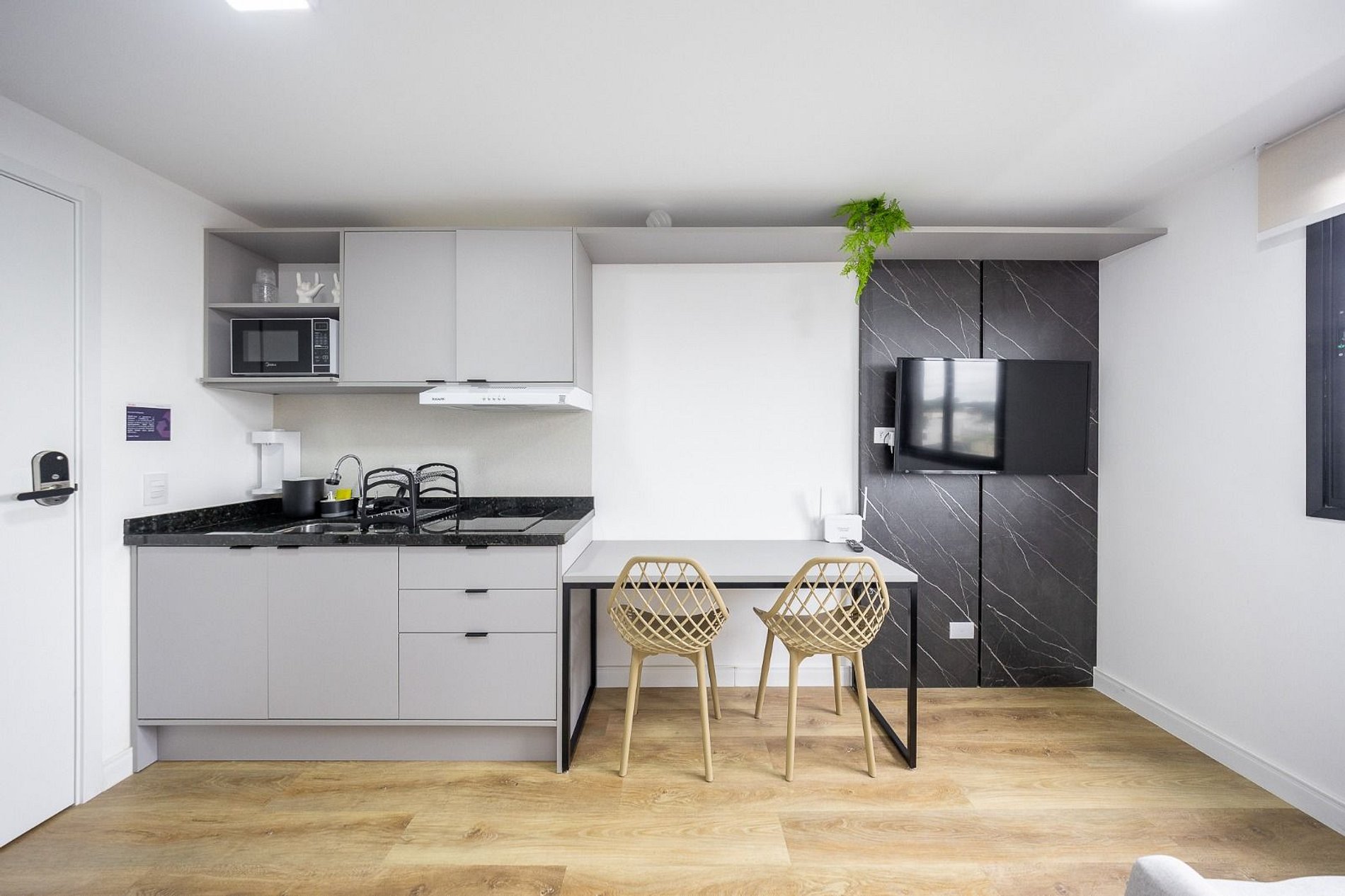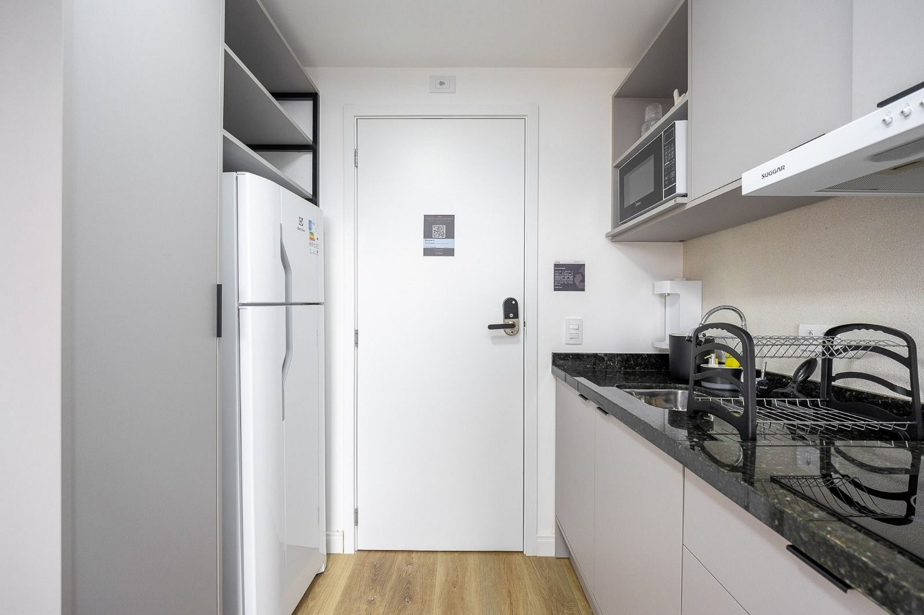 Sobre o apartamento: Studio totalmente mobiliado, no 3º andar, em excelente localização no Rebouças em Curitiba/PR. Finamente decorado, com aproximadamente 17m², conta com: Wi-Fi incluído, Aquecimento central, Móveis sob medida, Cama box casal, Smart TV, frigobar, Fogão de indução de 2 bocas, micro-ondas, Jogo de panelas, Talheres, Jogo de facas, Louças, Utensílios para cozinha. Região com facilidades e comodidades. *Roupas de cama, mesa e banho não estão incluídas. O que está incluído no pacote mensal*: Aluguel, condomínio, água, gás, internet e energia eléctrica. O pacote mensal é calculado com base no consumo médio dos meses anteriores e consumos muito elevados poderão gerar cobrança adicional.