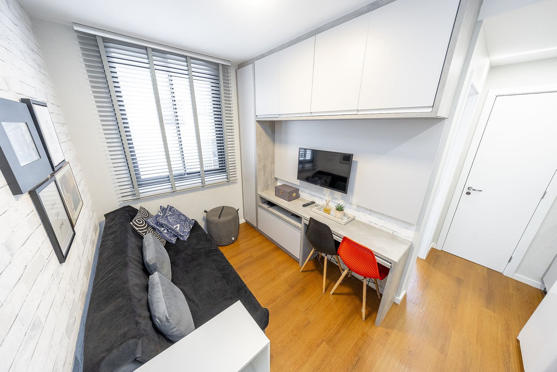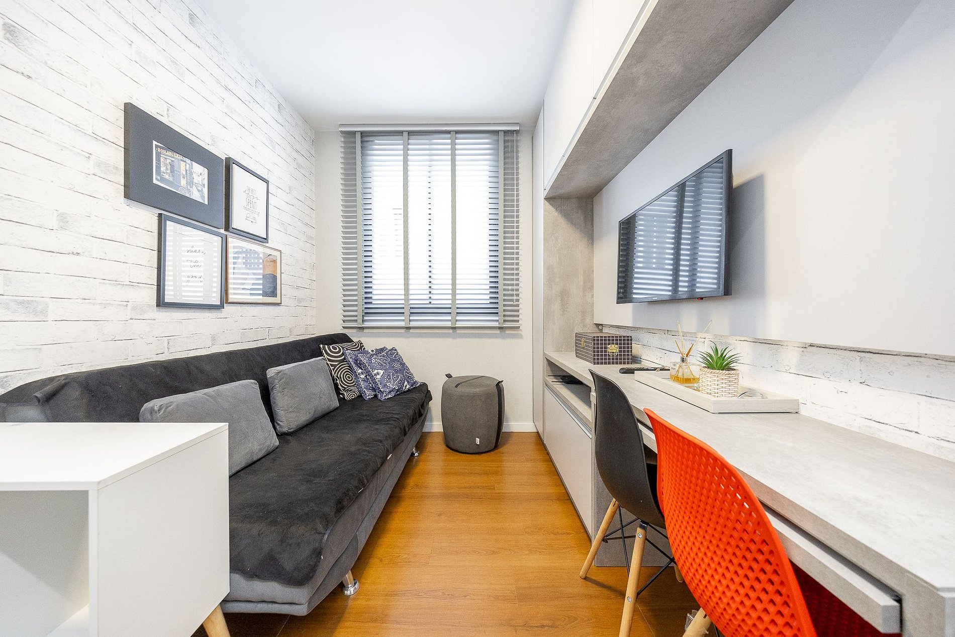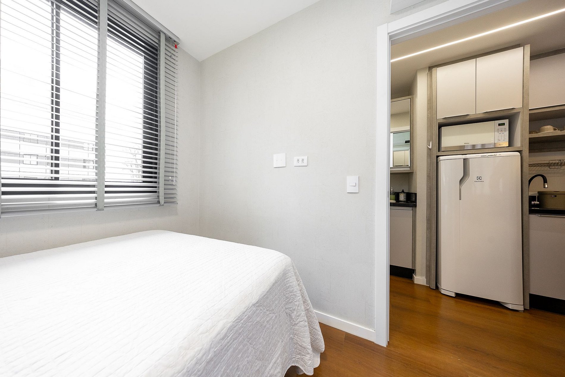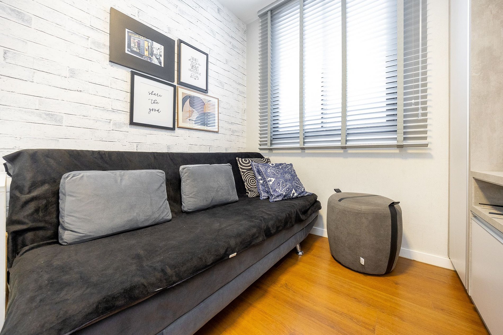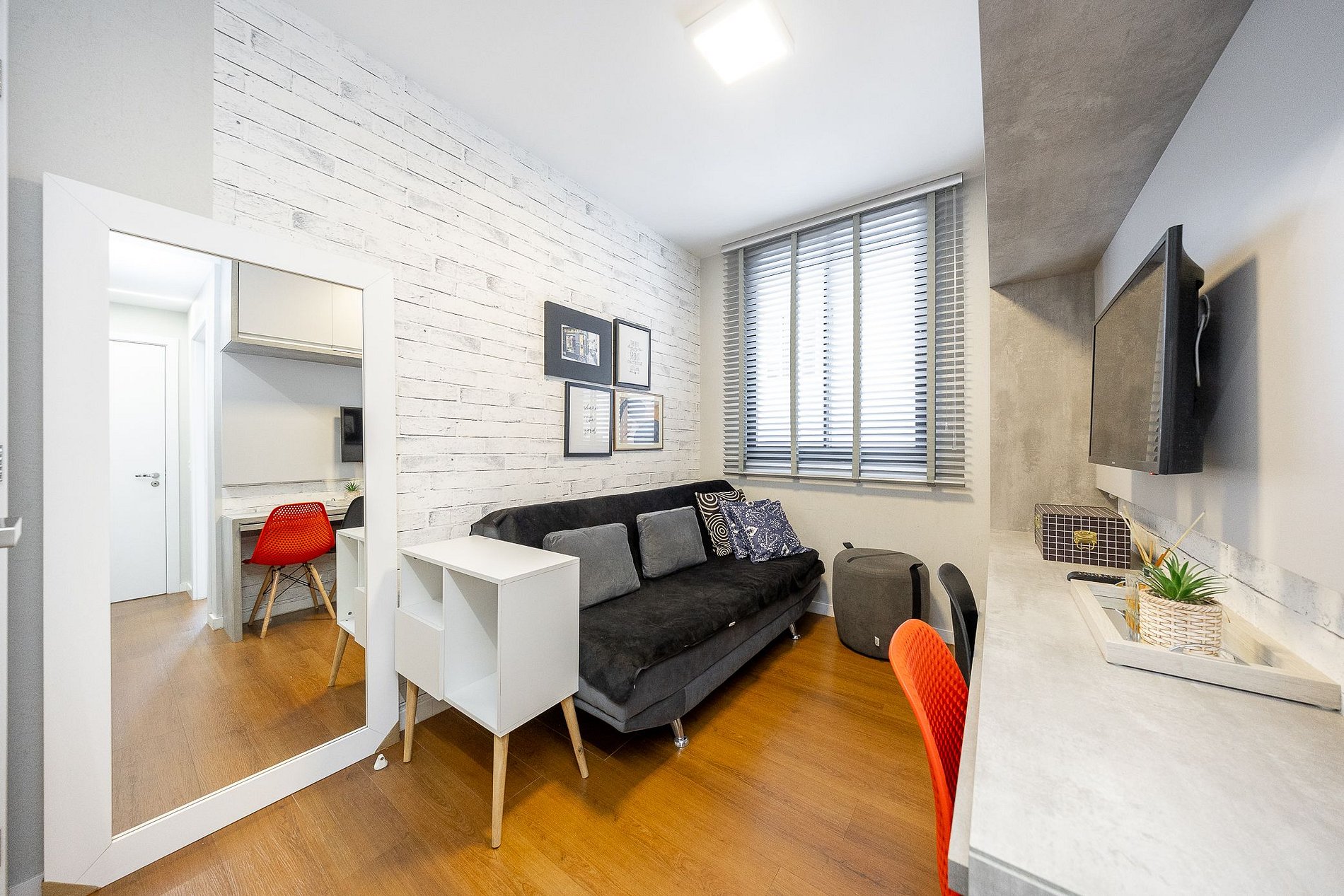 Studio 1 quarto, totalmente mobiliado, no 6º andar, em excelente localização no Centro, em Curitiba/PR. Finamente decorado, com aproximadamente xxm², conta com:
