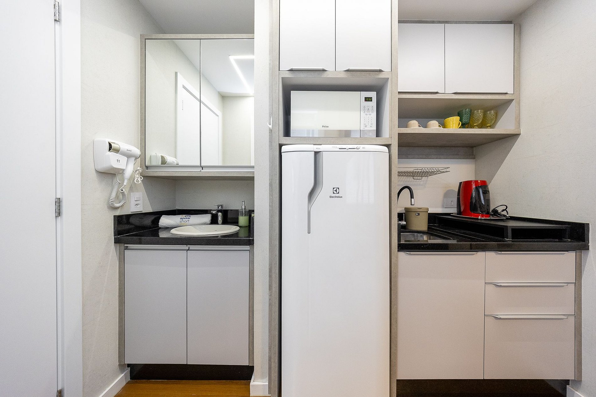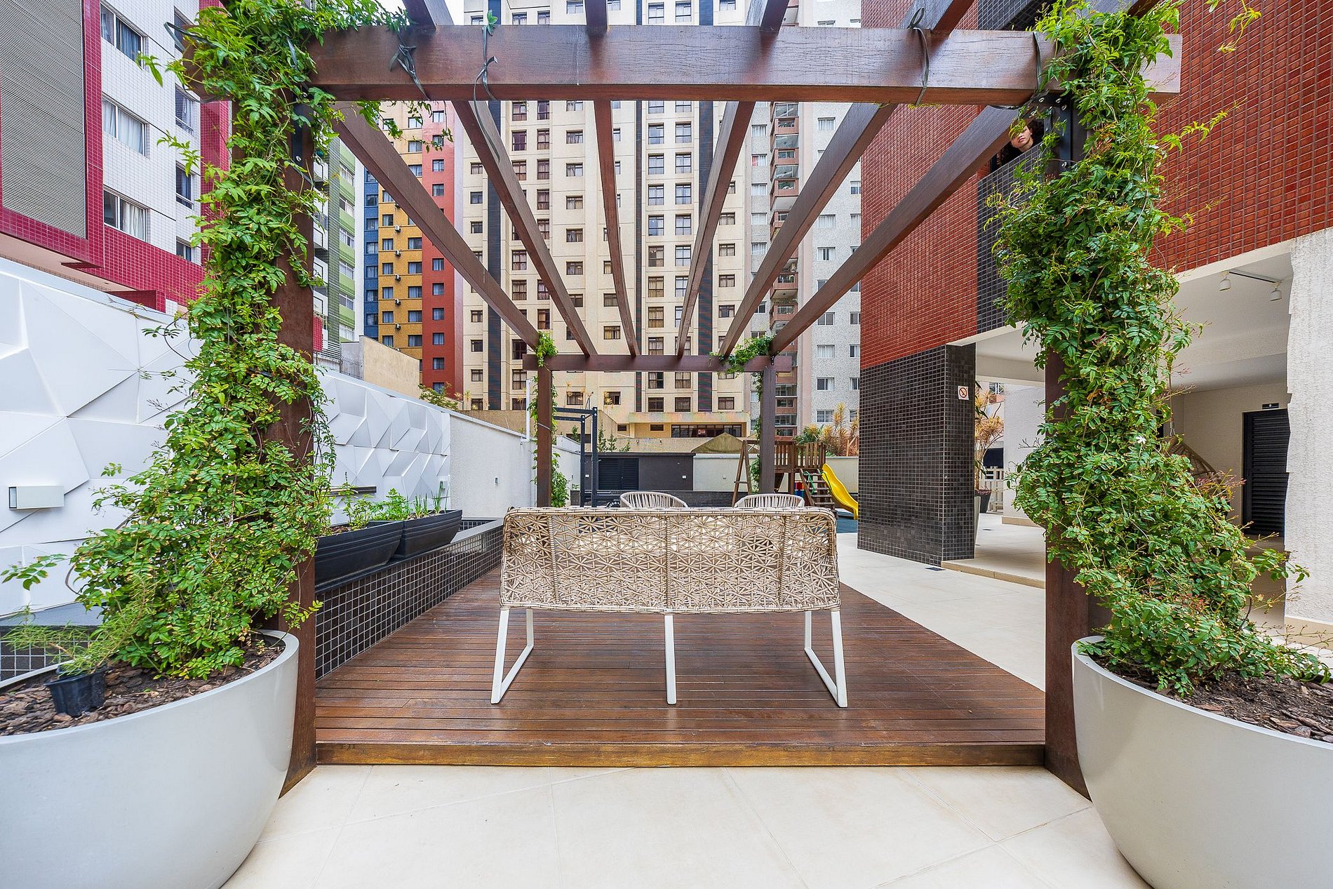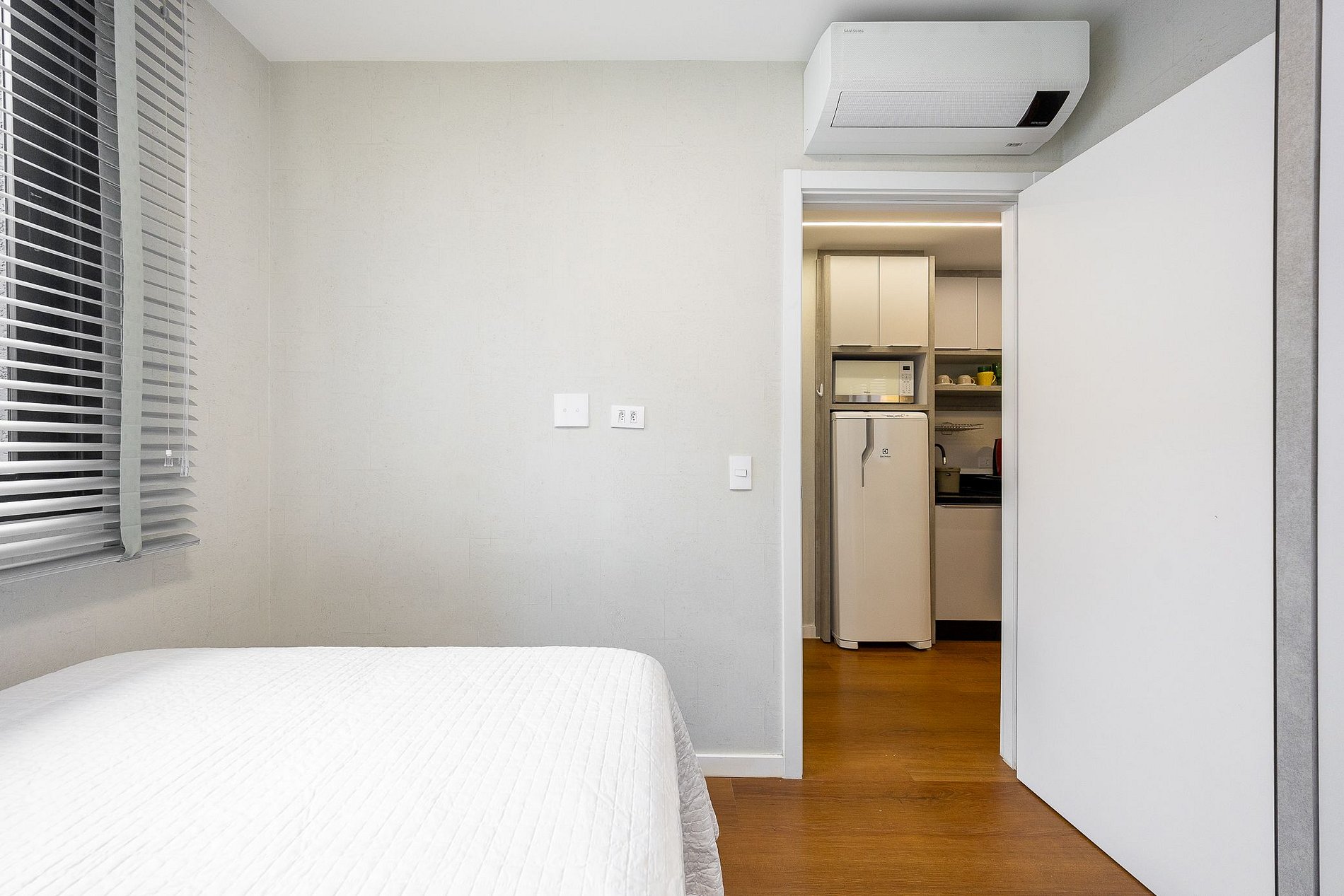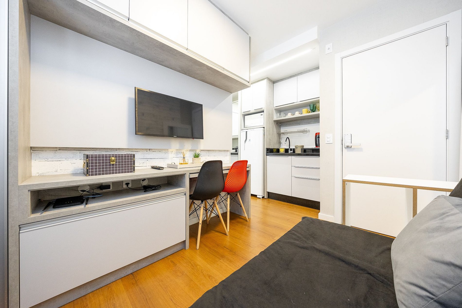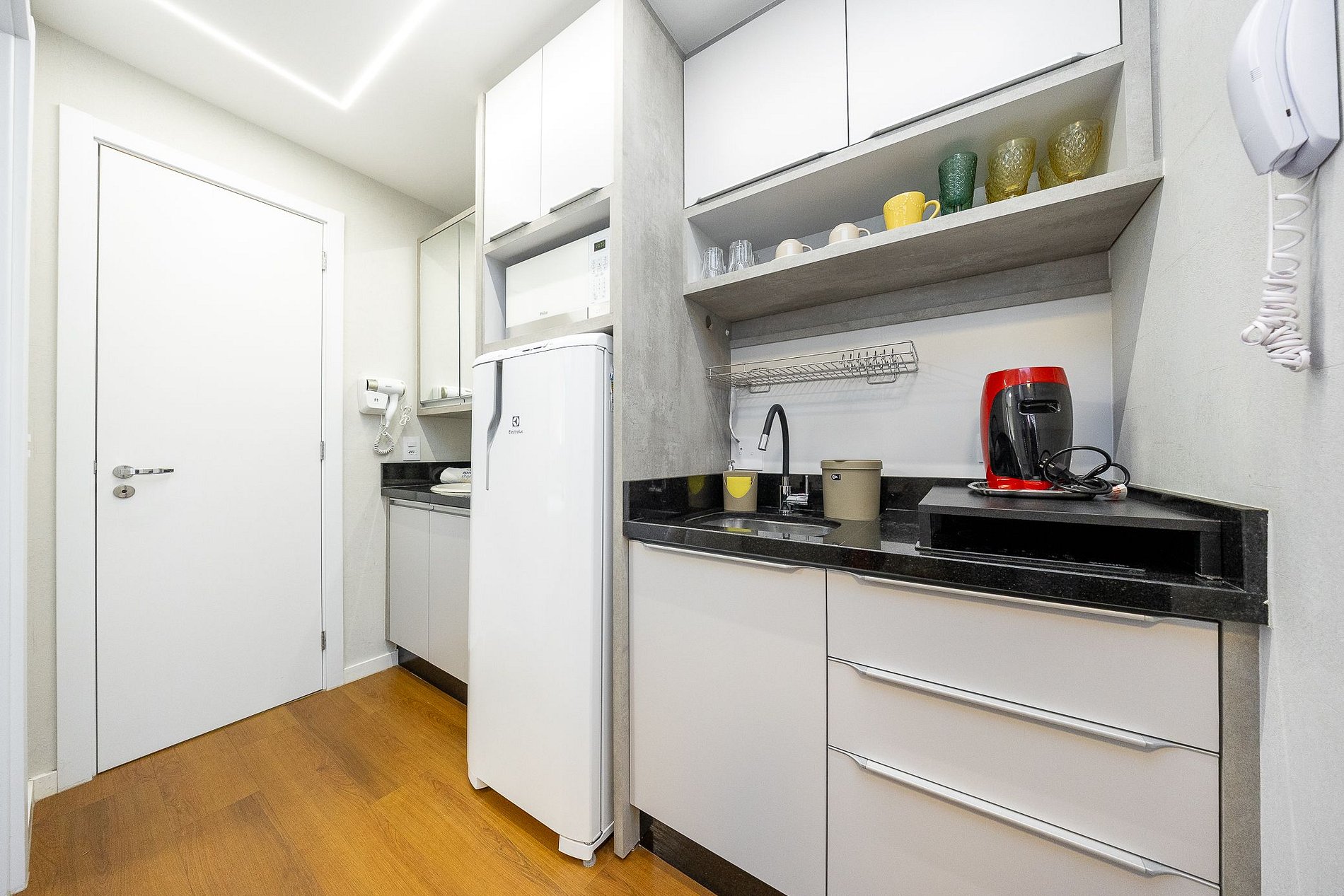 Studio 1 quarto, totalmente mobiliado, no 6º andar, em excelente localização no Centro, em Curitiba/PR. Finamente decorado, com aproximadamente xxm², conta com: