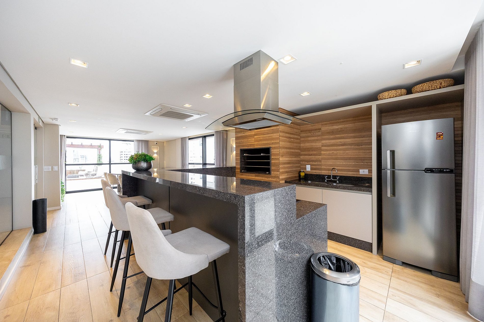 1 quarto Cozinha completa, Lavanderia no prédio, academia e demais áreas comuns.